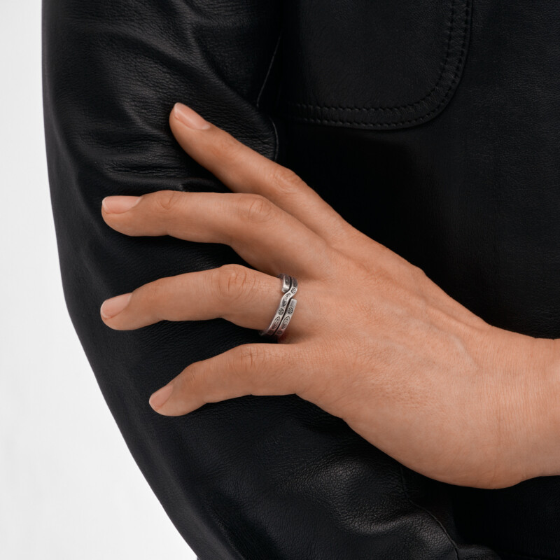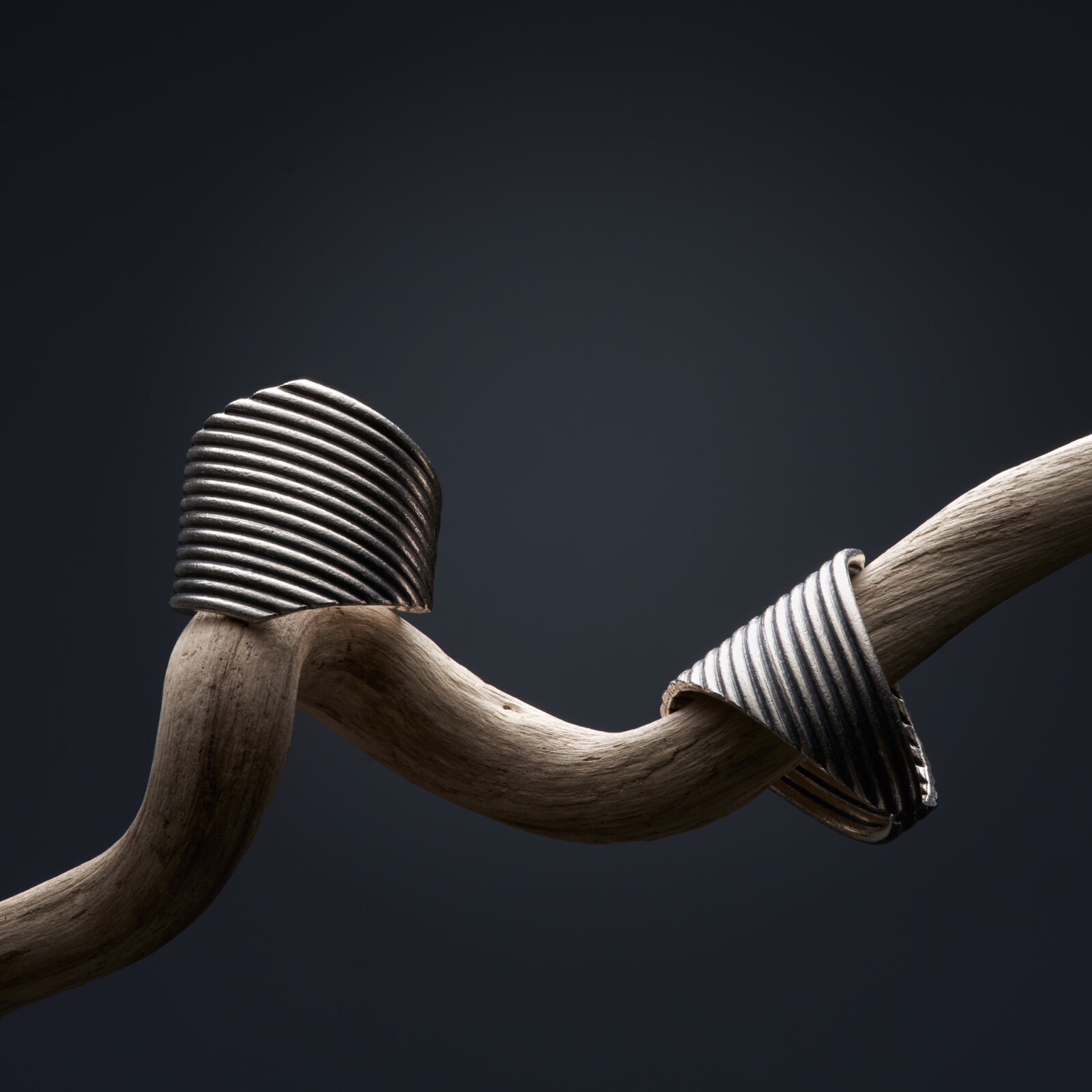 リングの背景は、MDF(木質繊維を成型した板)に白と黒のペンキを混ぜてグレーで塗ったものです。