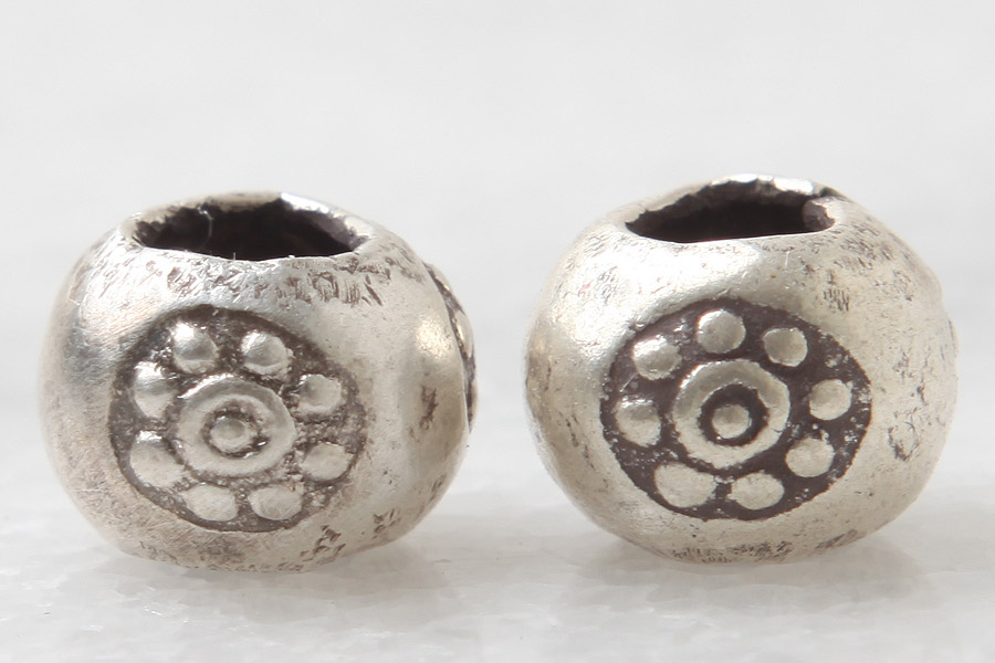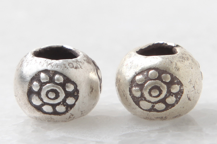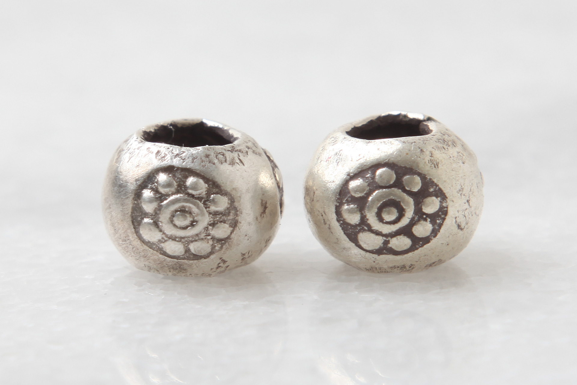次の写真をご覧ください。左側は黒化部分が薄れてしまっているカレン族シルバービーズ、右が通常のものです。