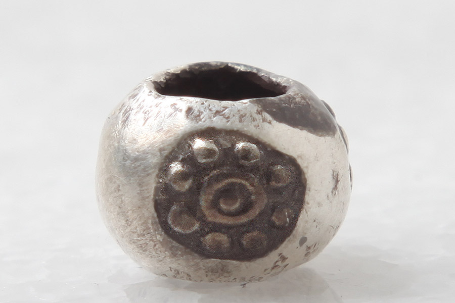 カレン族シルバーの持ち味には、温かみのある質感、無骨で荒削りの形状、そして黒化仕上げで浮き出す刻印などがあります。