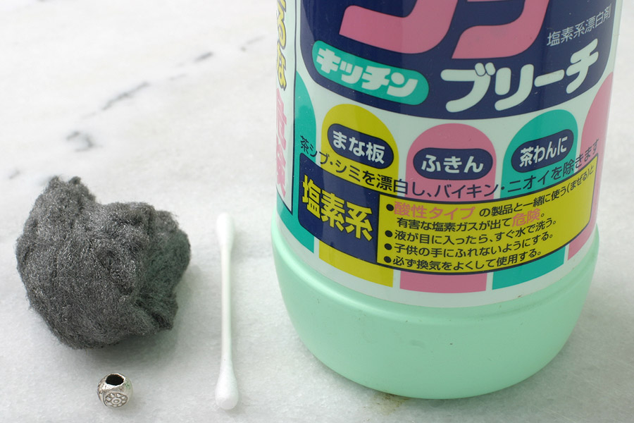 綿棒に漂白剤を少し付けて、黒化したい部分だけに少しづつ塗ってください。※黒化しすぎないよう十分注意し、目立たないところで試してみてから行ってください。