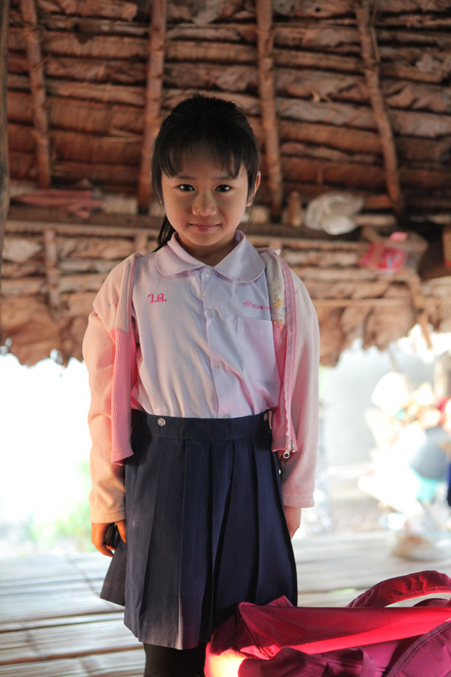 お寺の参拝を終えて制服に着替えたジョディさんの孫娘。これから学校です。