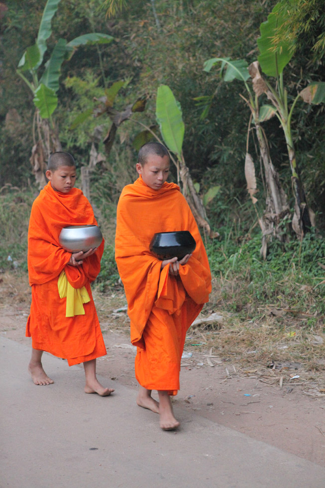 写真は托鉢に回る少年僧。仏教徒のカレン族はタイ人同様、男子は生涯のうちに1度は必ず出家します。