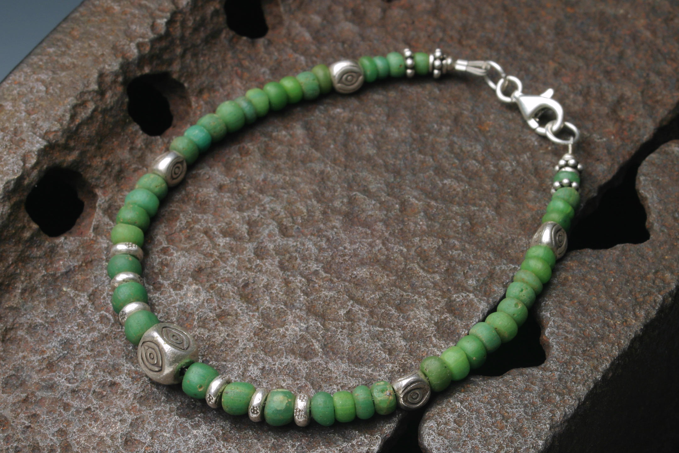 カレン族シルバー 1100年以上前 アンティークビーズ 緑 ブレスレット アンクレット 眼文様 護身符 お守り 魔除け SV950 a05-57