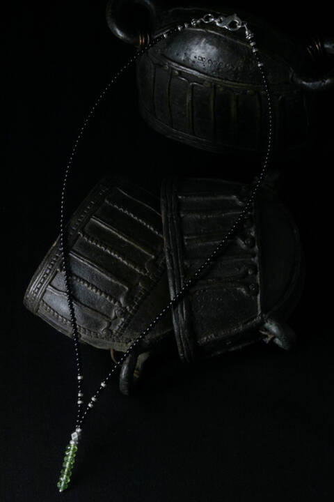 • カレン族シルバー 萌え立つ緑 ペリドット 漆黒の輝き オニキス ビーズ ネックレス 魔除け SV950 a03-60