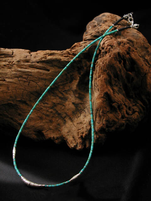 • カレン族シルバー 天然無染色 ターコイズ ビーズ ブレスレット アンクレット SV950 a06-13