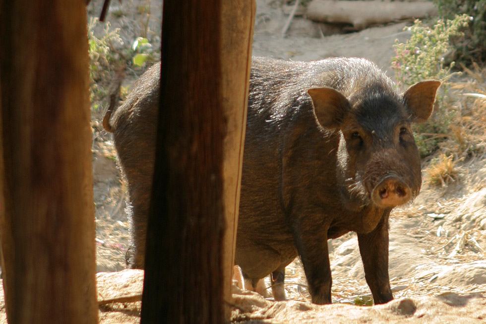 床下で飼われている豚