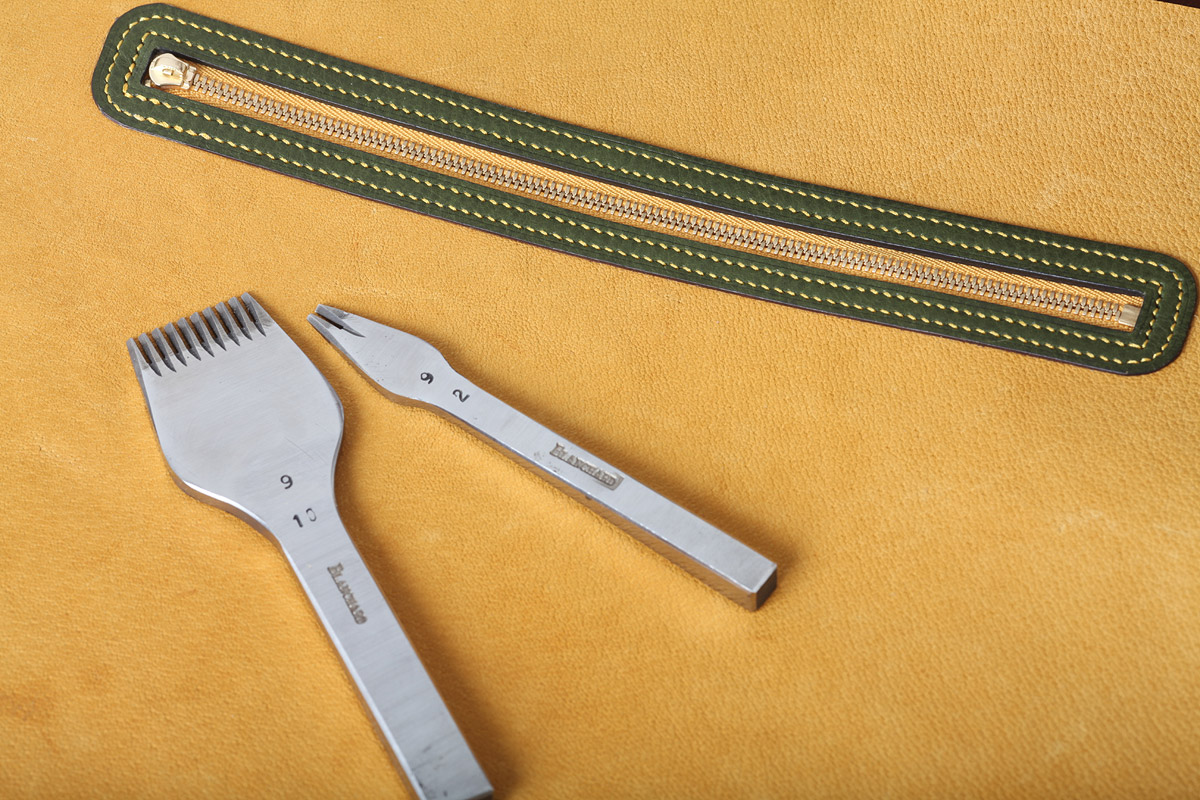 この銀色のフォークはエルメスの職人も愛用するフランス製目打ち。革に縫い目を打つ道具。これが手縫いの美しい縫い目を作り上げます。
