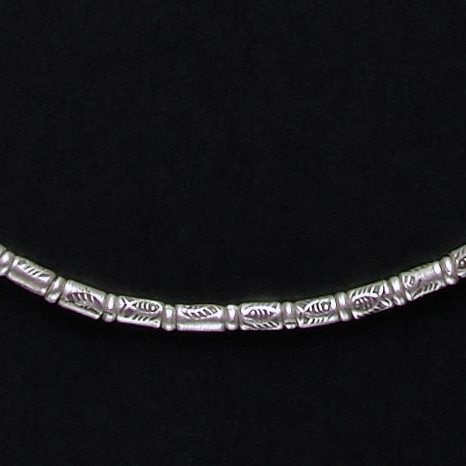 象形化した魚の刻印のカレンシルバービーズを用いたシンプルなネックレスです。