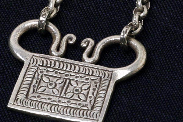 「魂の鍵」と呼ばれるモン族(タイ)の伝統的装身具をトップに配したシルバーチェーンネックレスです。