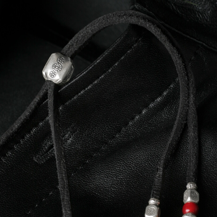 | 素材 | シルバービーズ SV950(銀純度95%)/タイ製 鹿革紐 ホワイトハートビーズ(アンティークビーズ)/イリアンジャヤ |