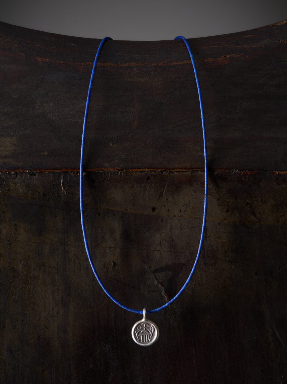青の絹糸のようにも見えますが目を凝らして初めて分かるほど、極小で極上のラピスラズリビーズが連なる繊細なネックレスです。