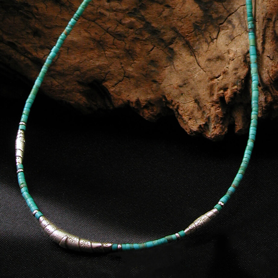 | 素材 | シルバービーズ SV950(銀純度95%)/タイ製 留め具 SV925/イタリア製 ストッパー SV940/アメリカ製 ステンレスワイヤー/日本製 ターコイズ(ナチュラル)/アフガニスタン アンティークビーズ |