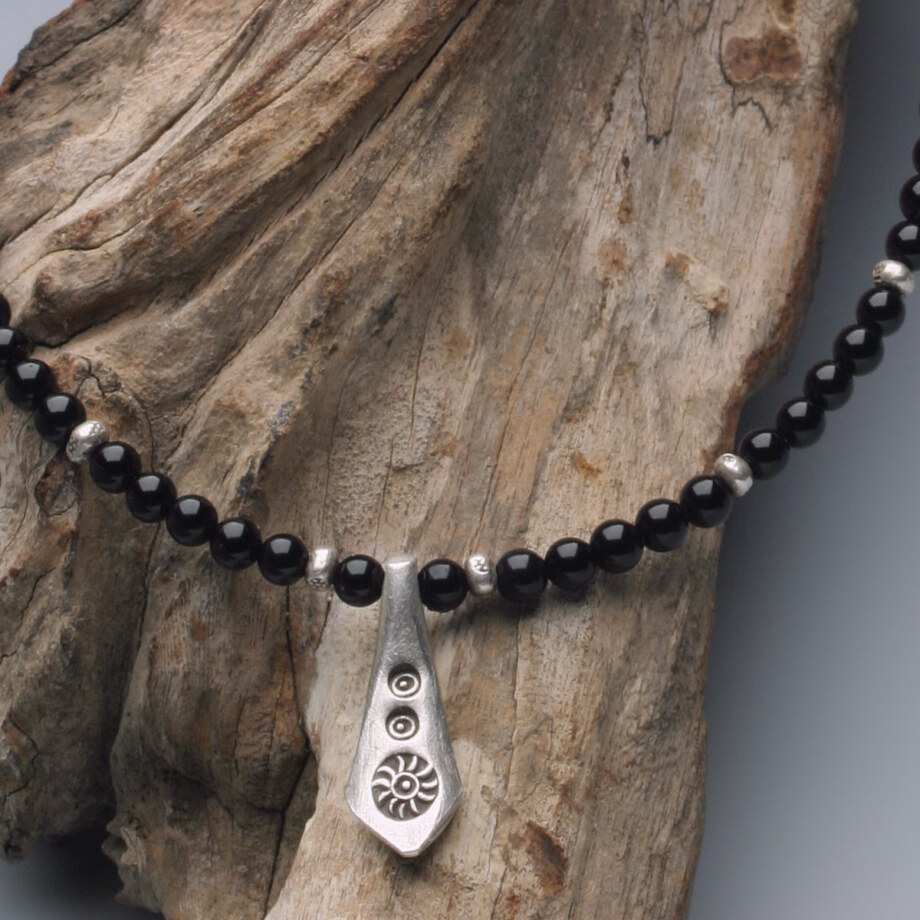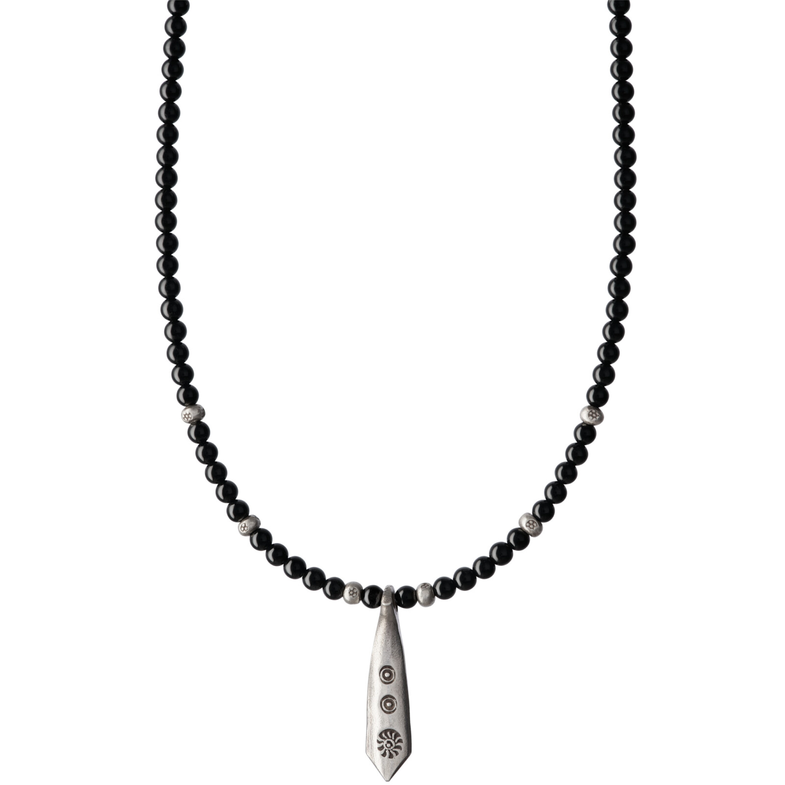 立体感ある菱形のカレンシルバーをトップにあしらった細身のブラックオニキスネックレスです。