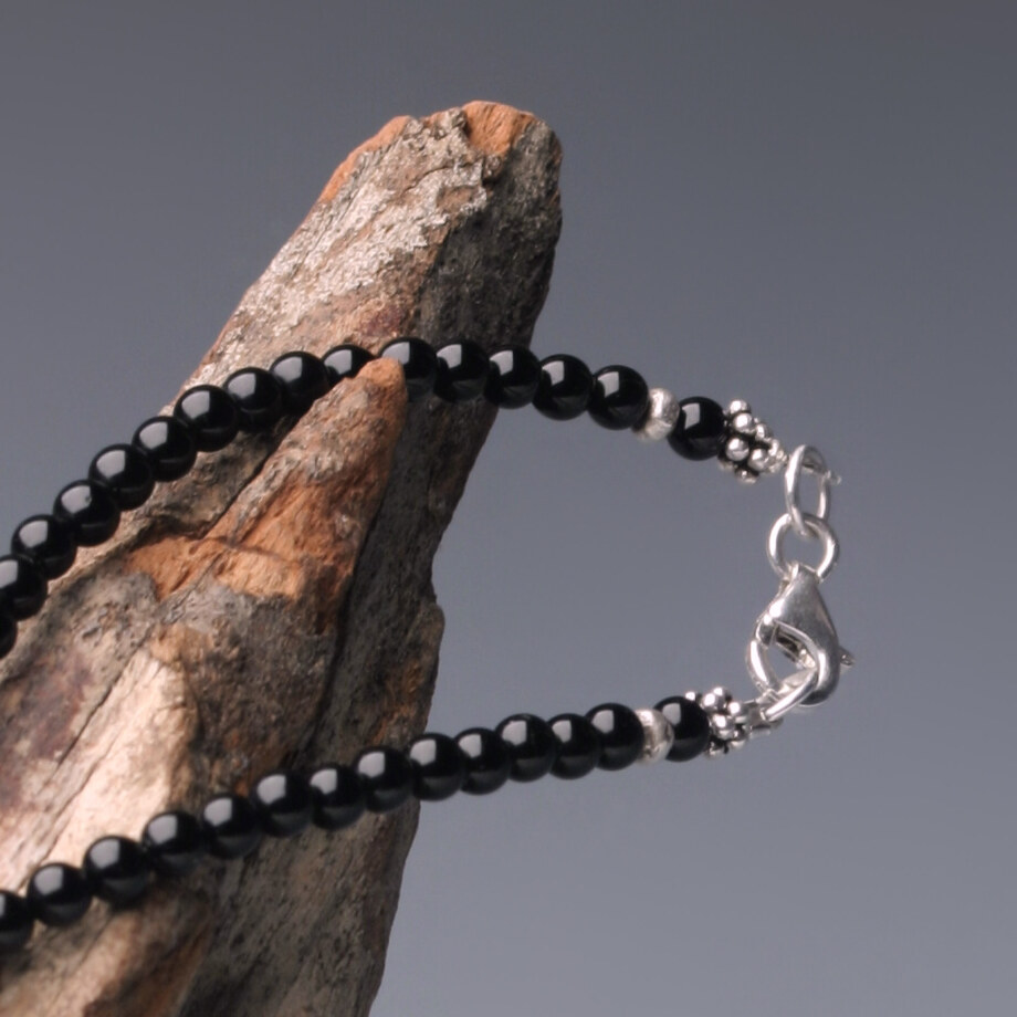 | 素材 | シルバービーズ SV950(銀純度95%)/タイ製 留め具 SV925/イタリア製 ストッパー SV940/アメリカ製 ステンレスワイヤー/日本製 ブラックオニキス/インド |