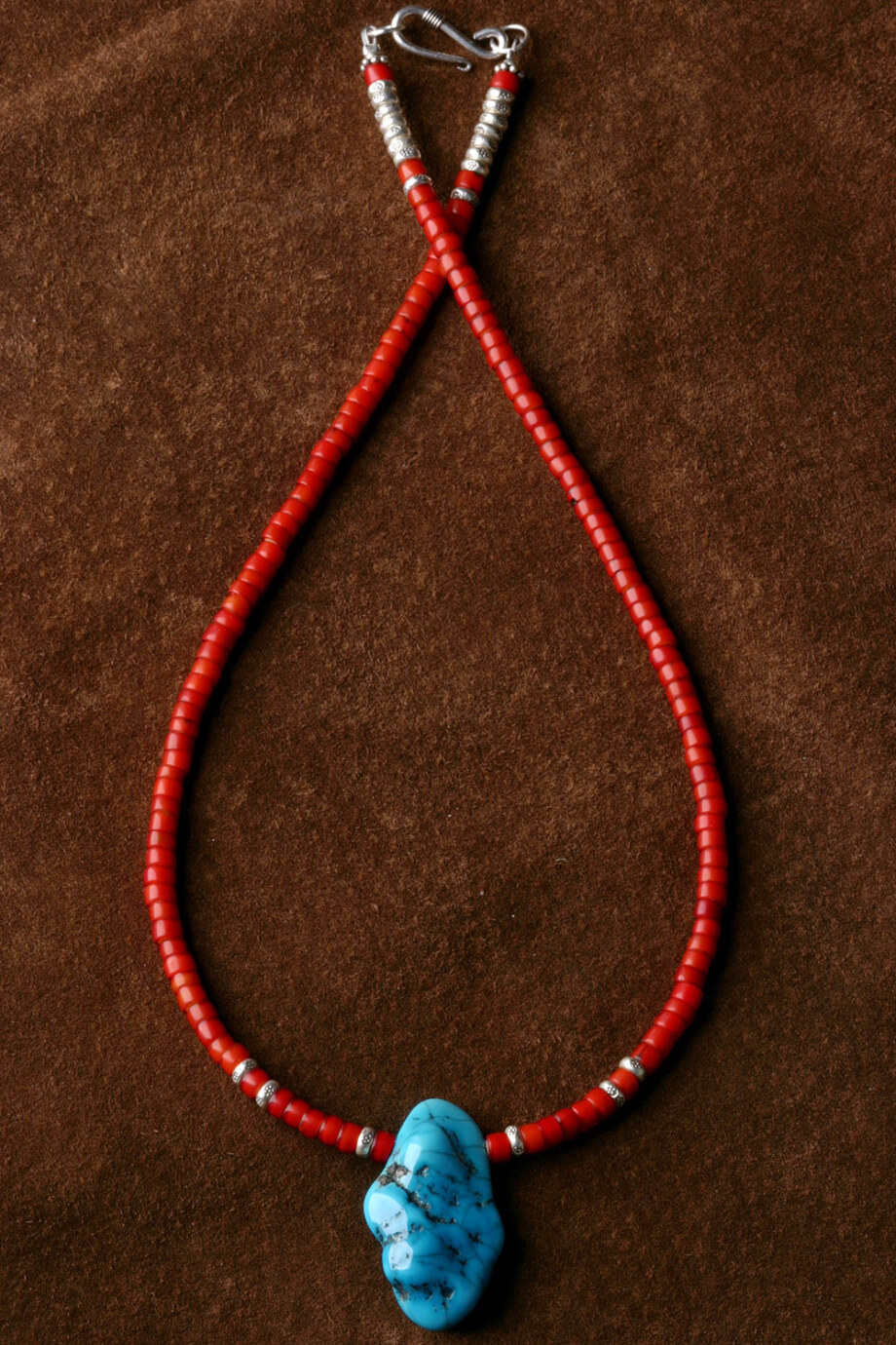 鉱山閉山で希少価値が高まっているスリーピングビューティ産ターコイズの塊りをトップにあしらったネックレスです。