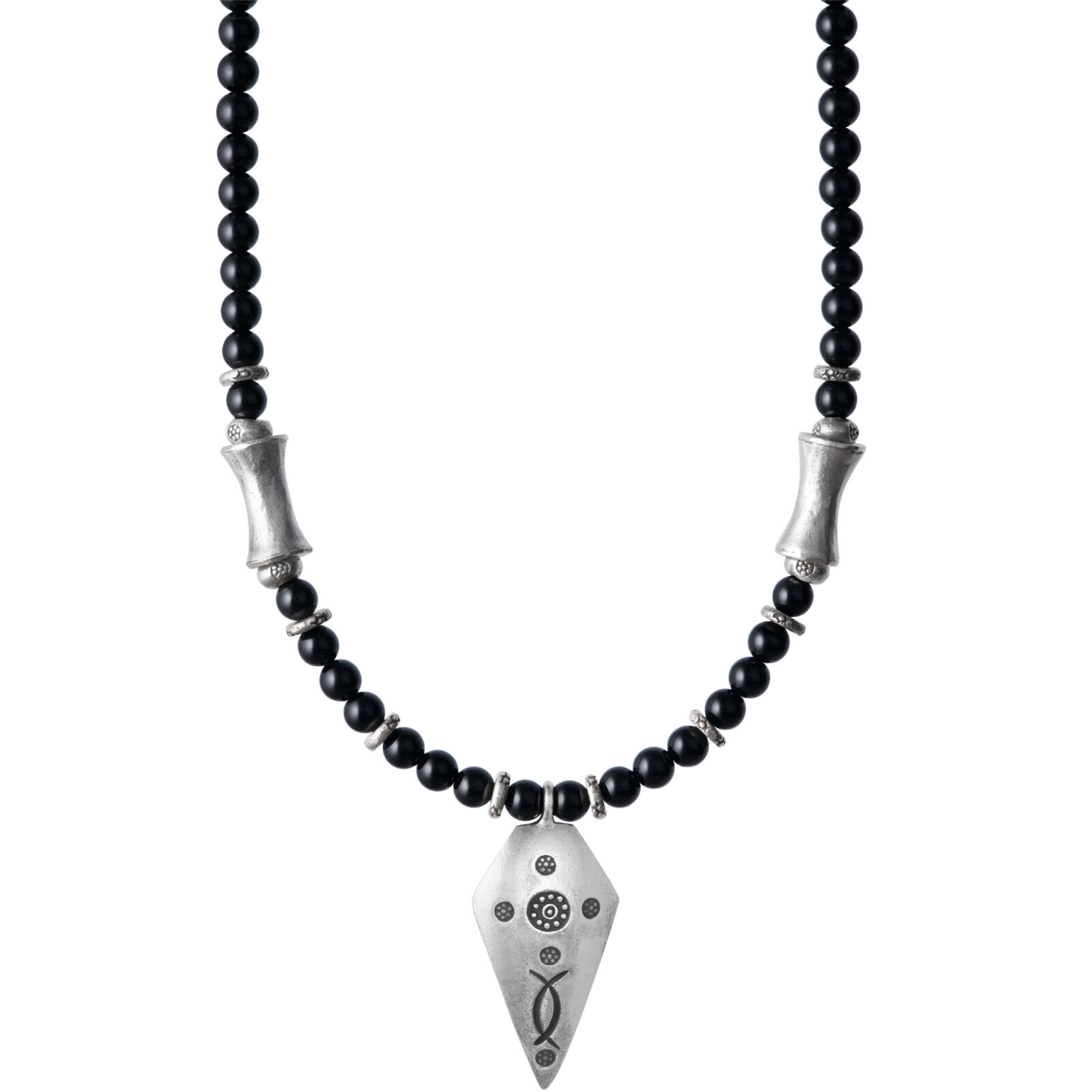トゥアレグ族(北アフリカ)の伝統的装身具をカレンシルバービーズで表現したネックレスです。
