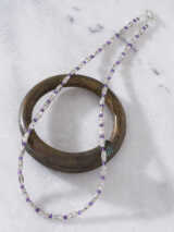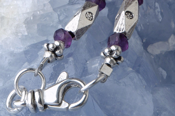| 素材 | シルバービーズ SV950(銀純度95%)/タイ製 留め具 SV925/イタリア製 ストッパー SV940/アメリカ製 ステンレスワイヤー/日本製 アメジスト/ブラジル |