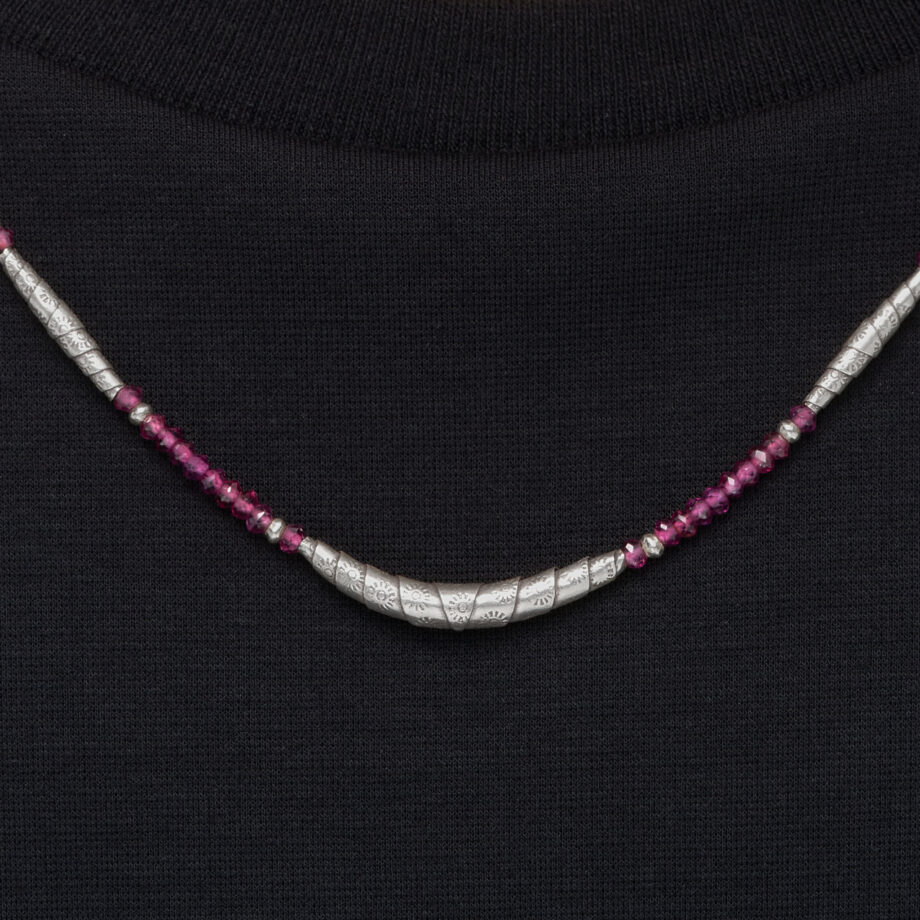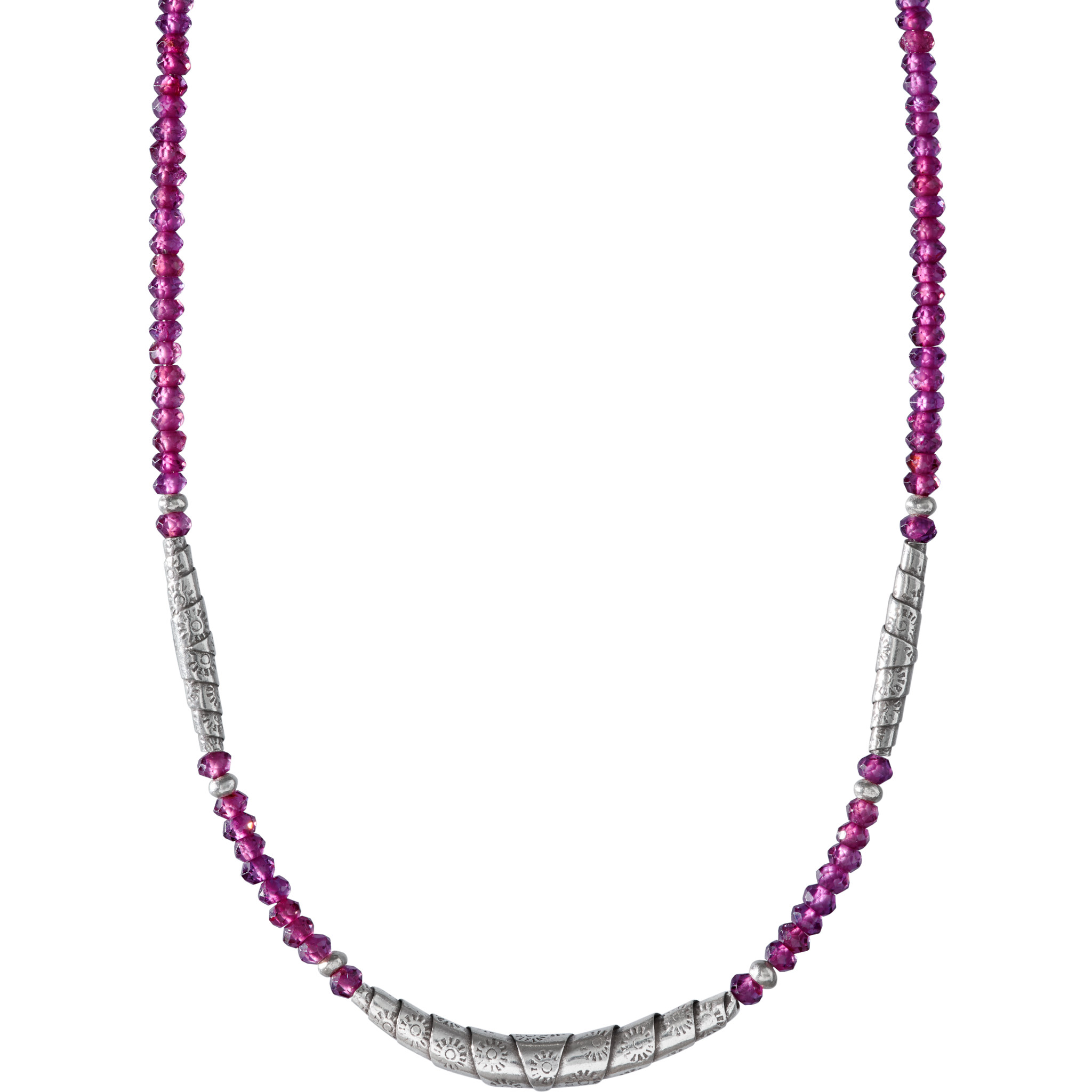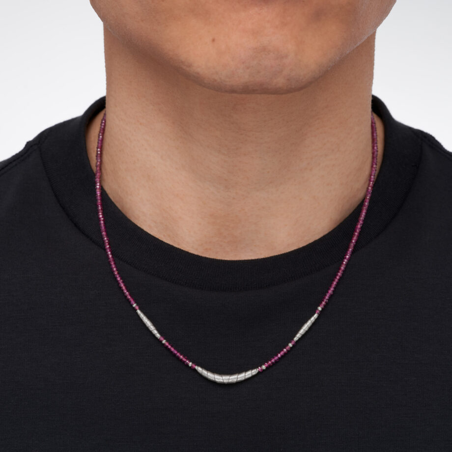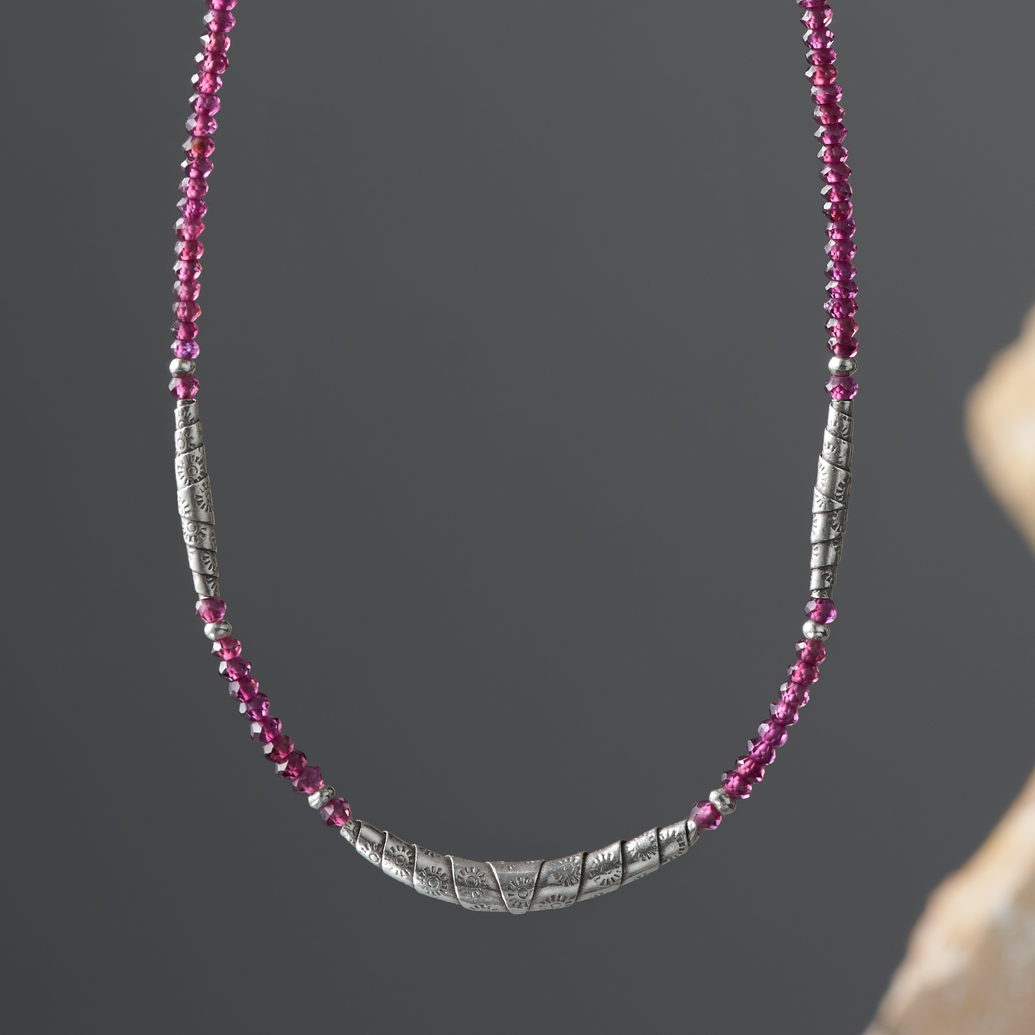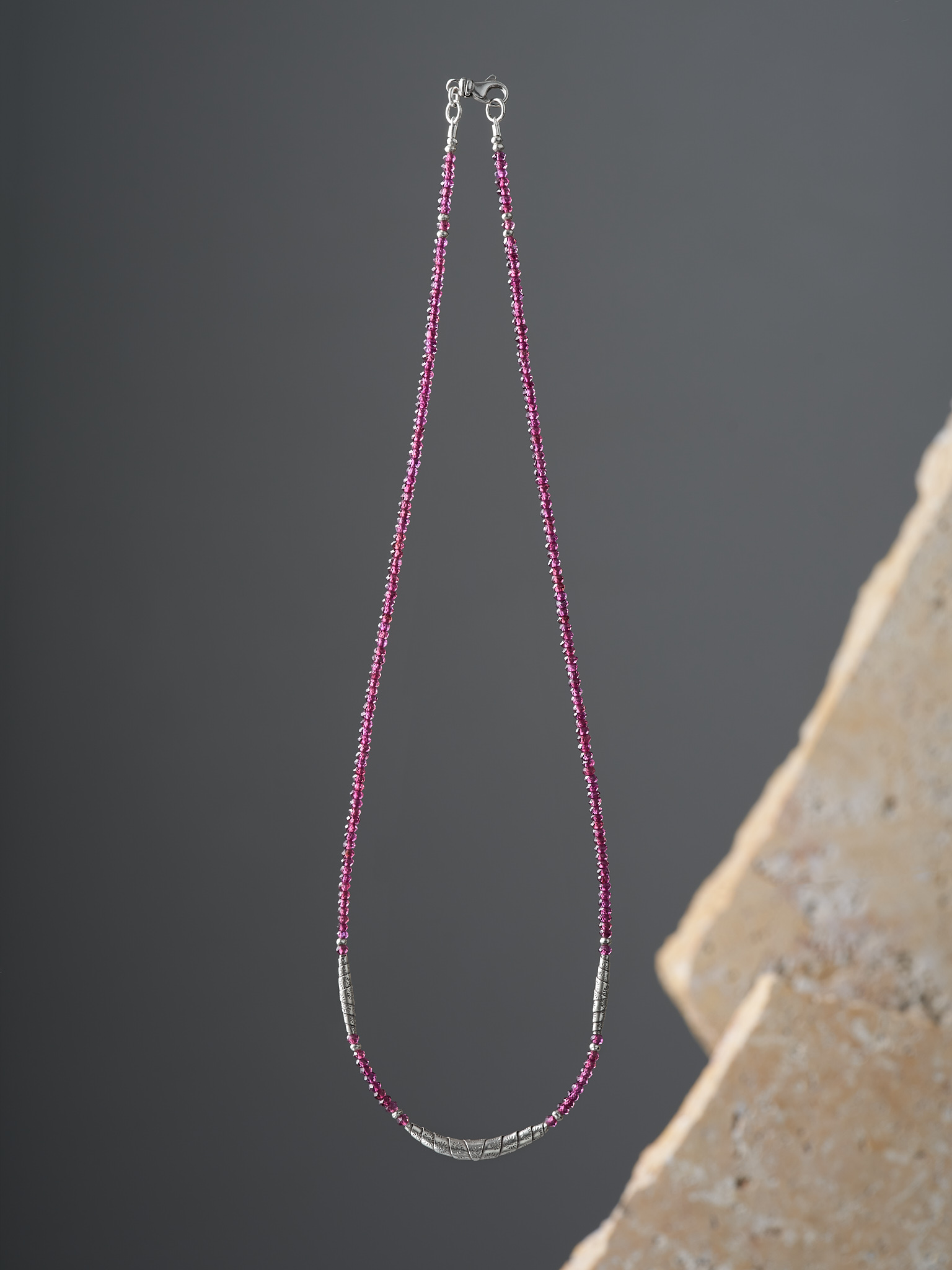初夏に咲くツツジのような、鮮やかな赤紫色をしたロードライトガーネットビーズネックレスです。