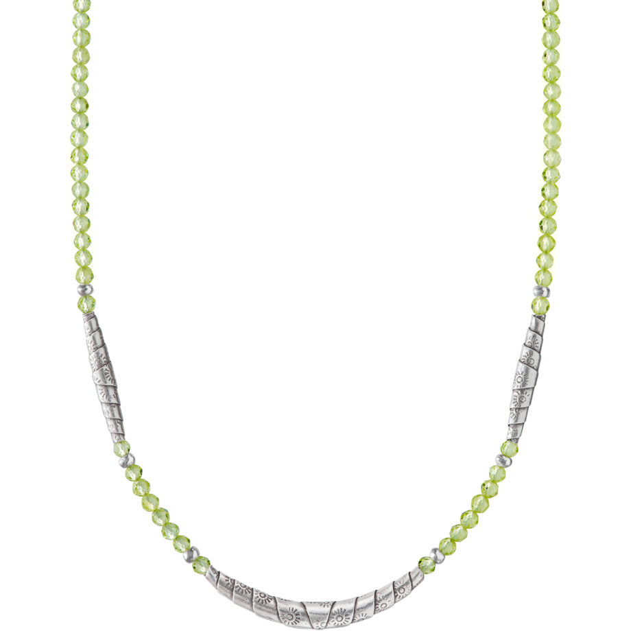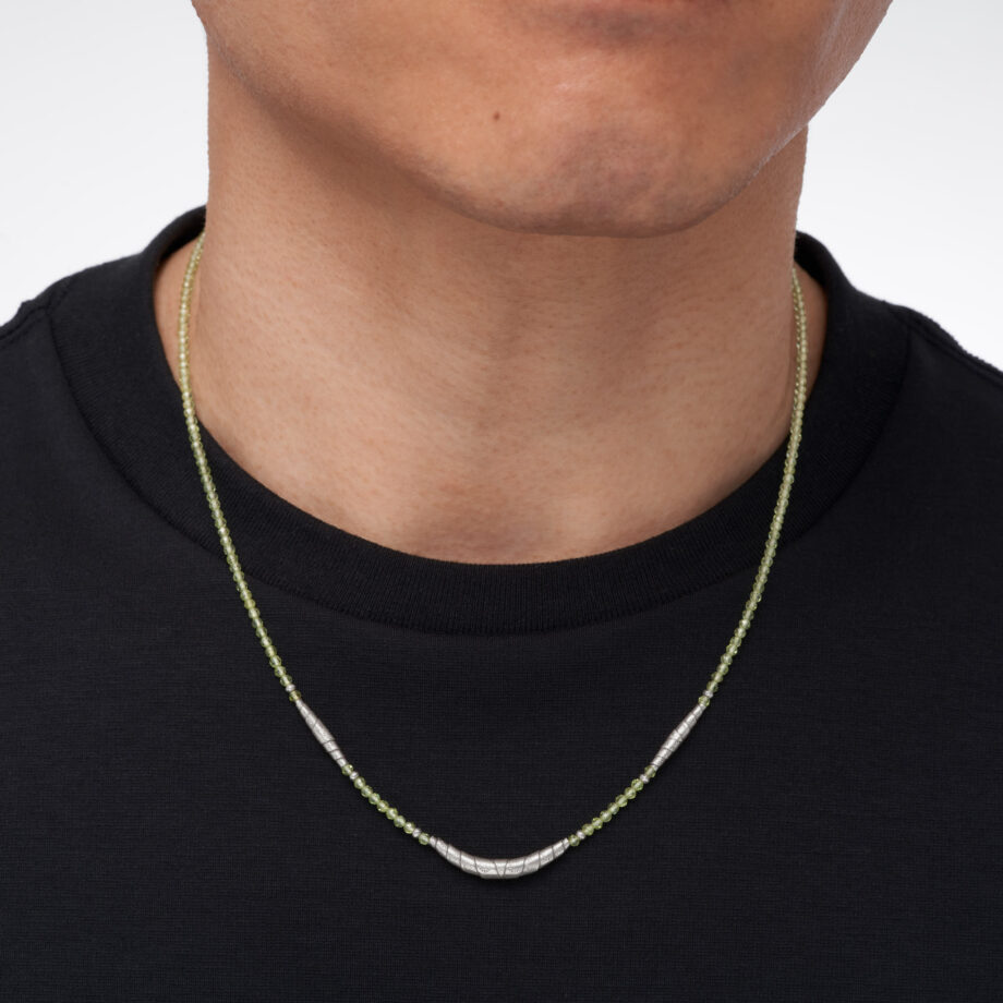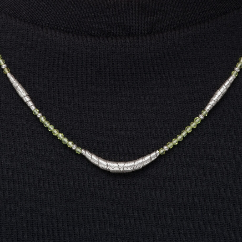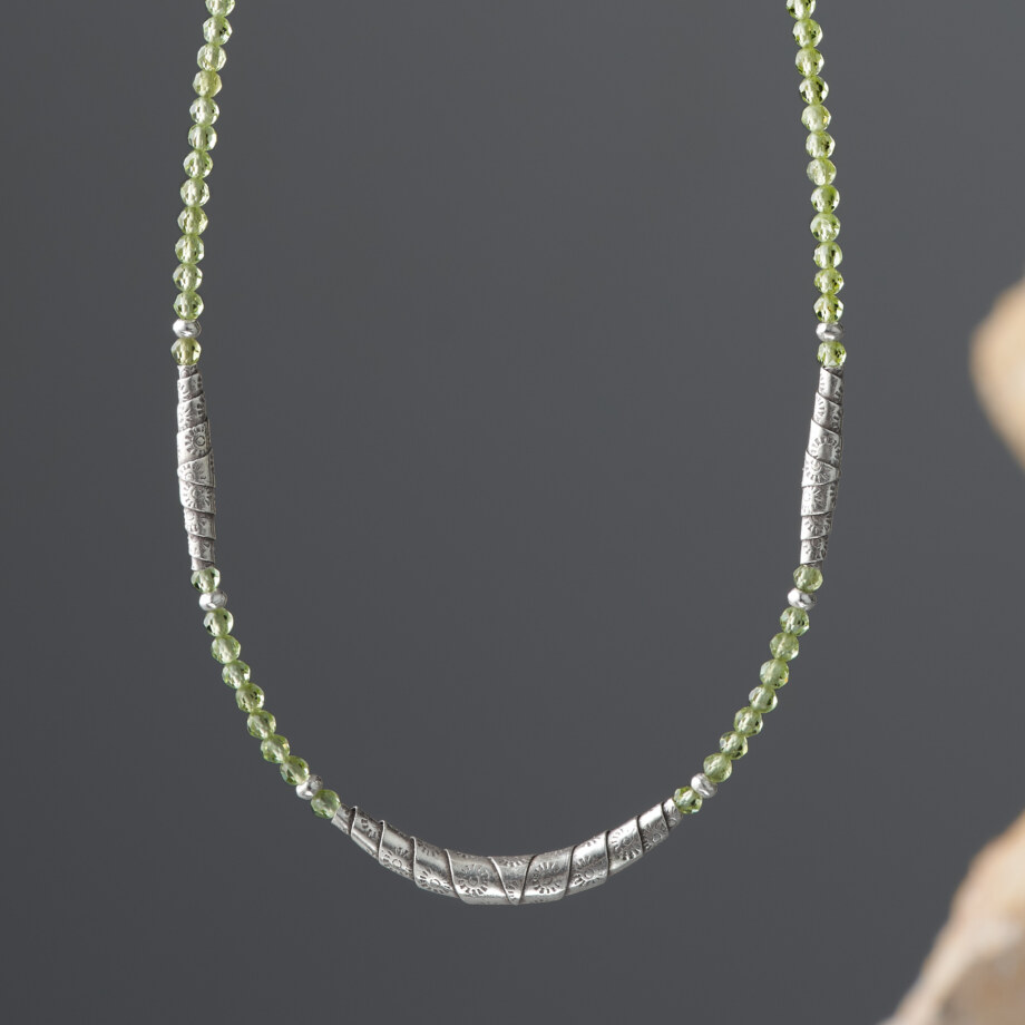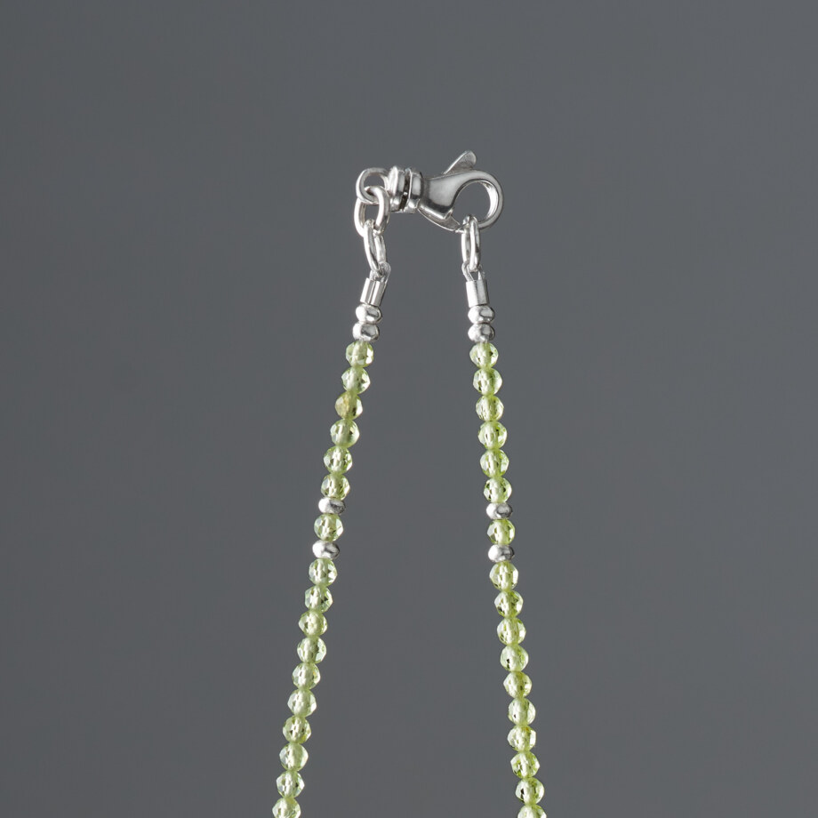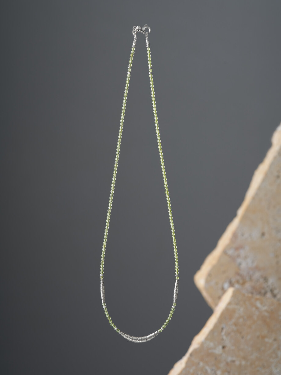 新緑の朝露のような瑞々しいペリドットビーズがきらめくネックレスです。