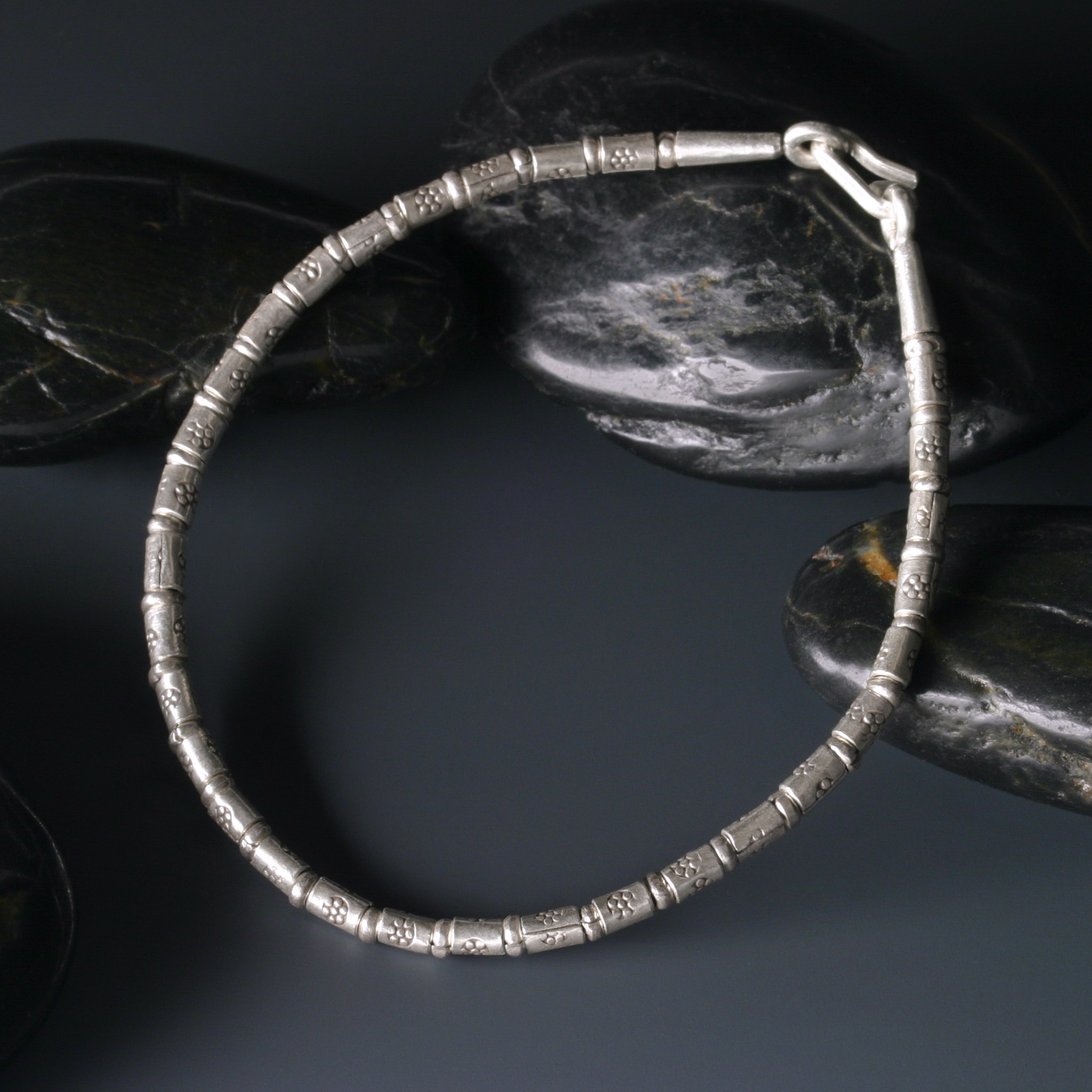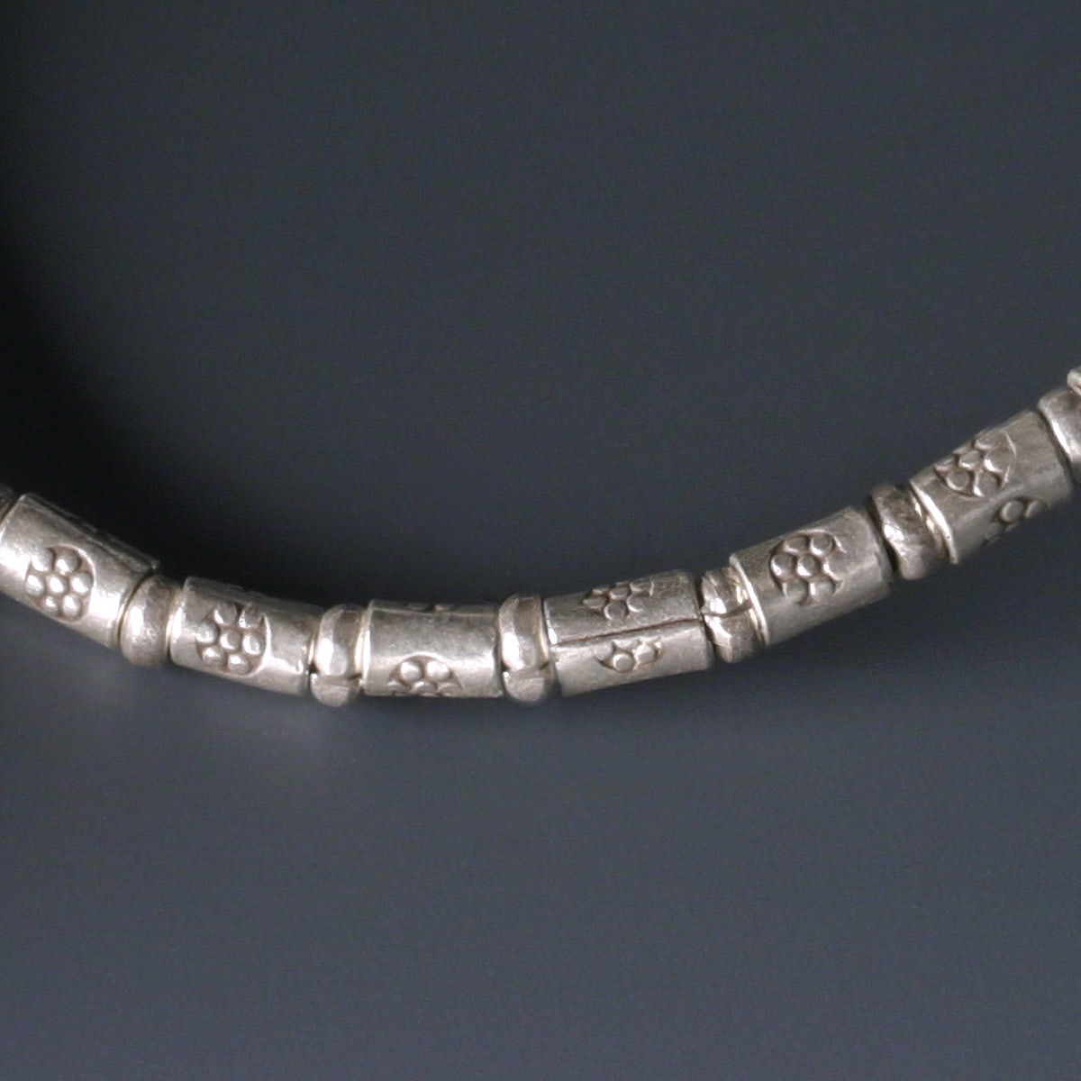 丹念に刻印が打ち込まれたシルバービーズに職人の技と心意気を感じられます。