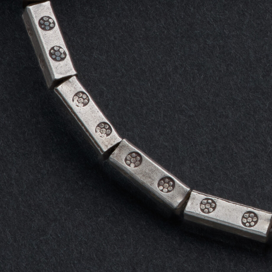 丹念に刻印が打ち込まれたシルバービーズに職人の技と心意気を感じられます。