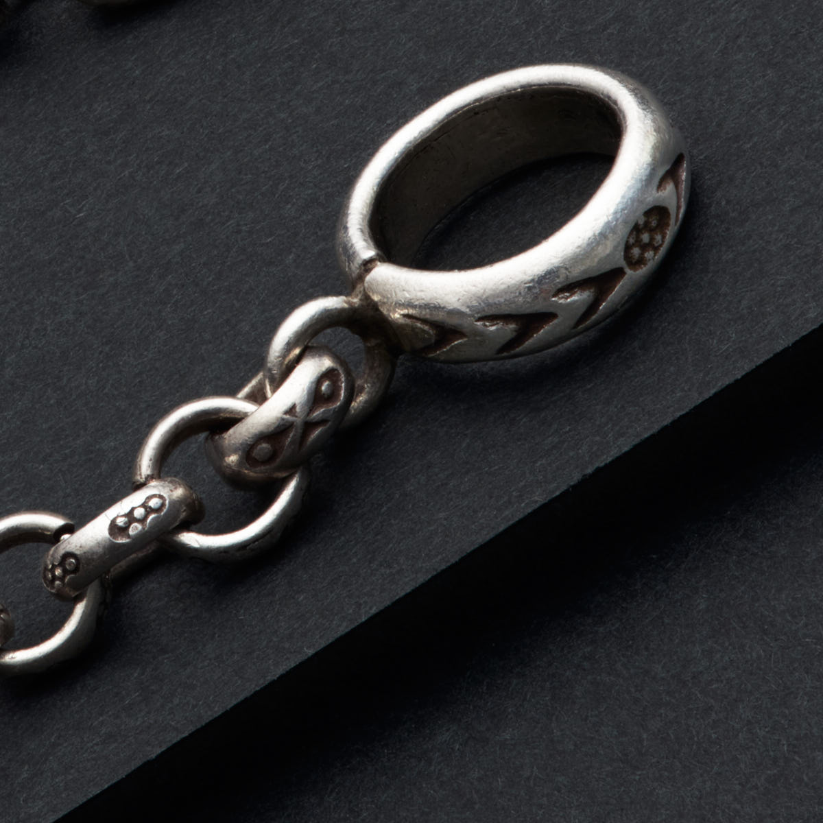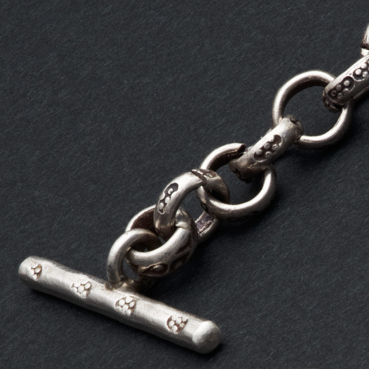 丹念に刻印が打ち込まれたシルバービーズに職人の技と心意気を感じられます。