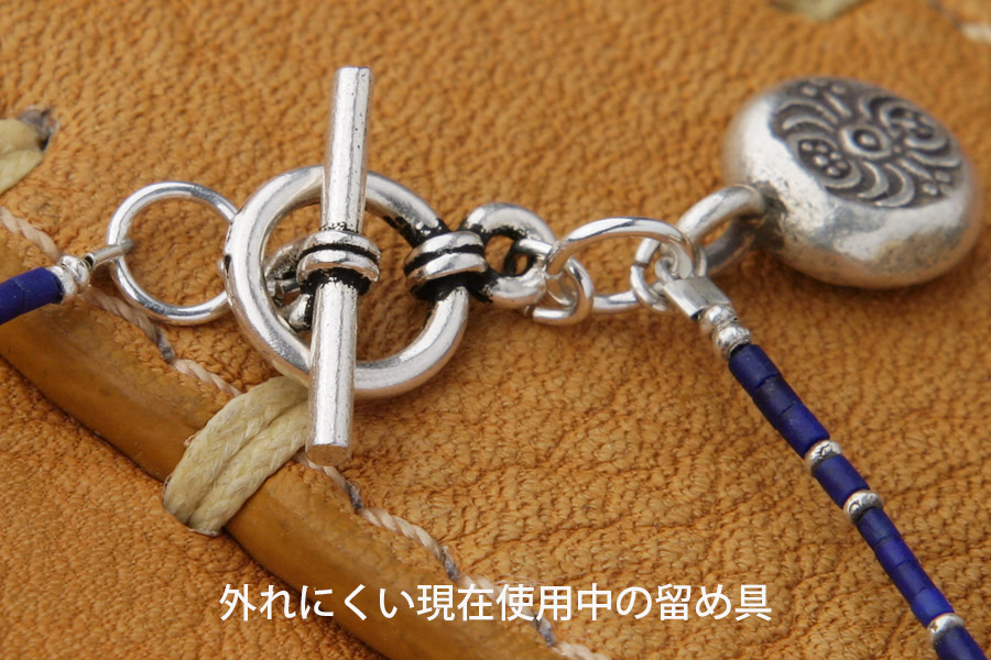| 素材 | シルバービーズ SV950(銀純度95%)/タイ製 留め具 SV925/イスラエル製 ストッパー SV940/アメリカ製 ステンレスワイヤー/日本製 ホワイトハートビーズ(アンティークビーズ) |