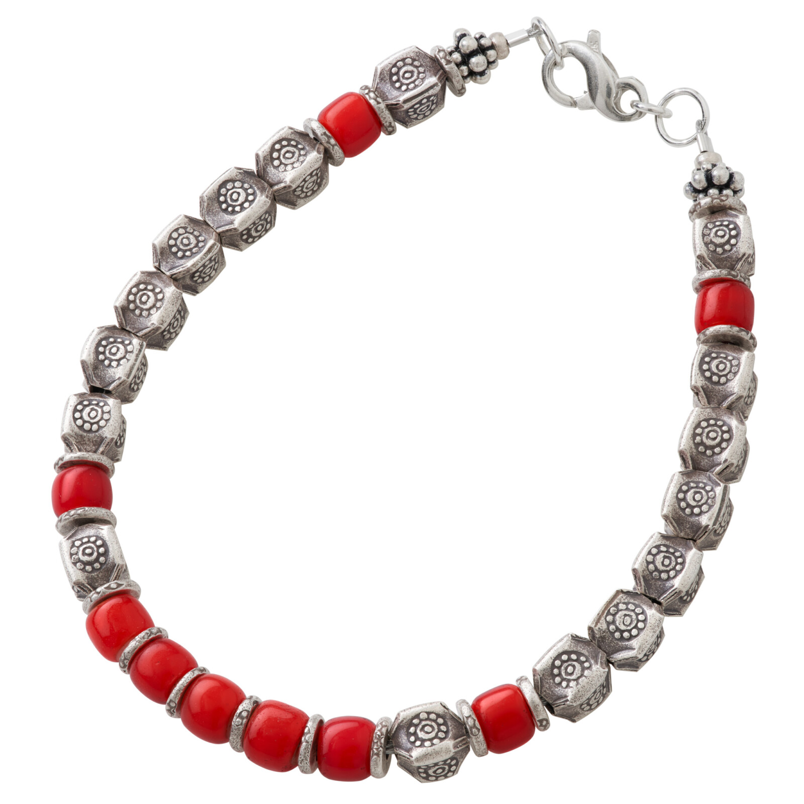 プエブロ族(北アメリカ)の伝統的装身具のパターンをカレンシルバービーズで表現したブレスレットです。