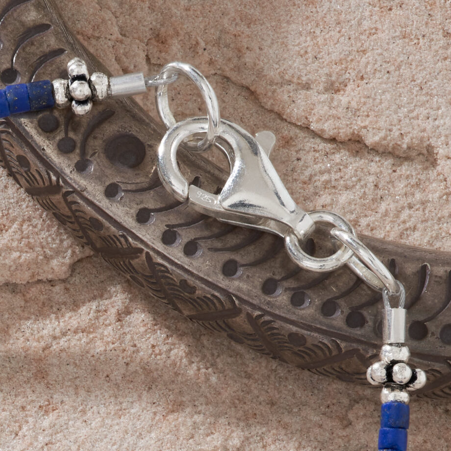 | 素材 | シルバービーズ SV950(銀純度95%)/タイ製 留め具 SV925/イタリア製 ストッパー SV940/アメリカ製 ステンレスワイヤー/日本製 ラピスラズリ/アフガニスタン |