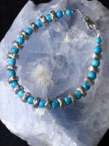天然無染色のアリゾナ産ターコイズ6mm玉と、昔ながらのやり方を大切にして作られたカレンシルバーを組み合わせたブレスレットです。