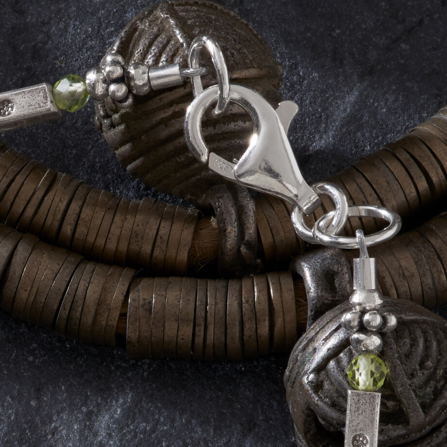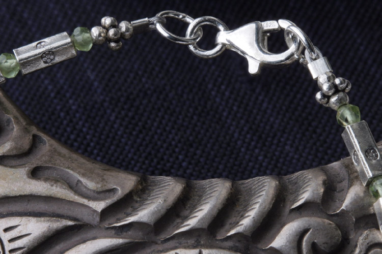 | 素材 | シルバービーズ SV950(銀純度95%)/タイ製 留め具 SV925/イタリア製 ストッパー SV940/アメリカ製 ステンレスワイヤー/日本製 ペリドット/アリゾナ |