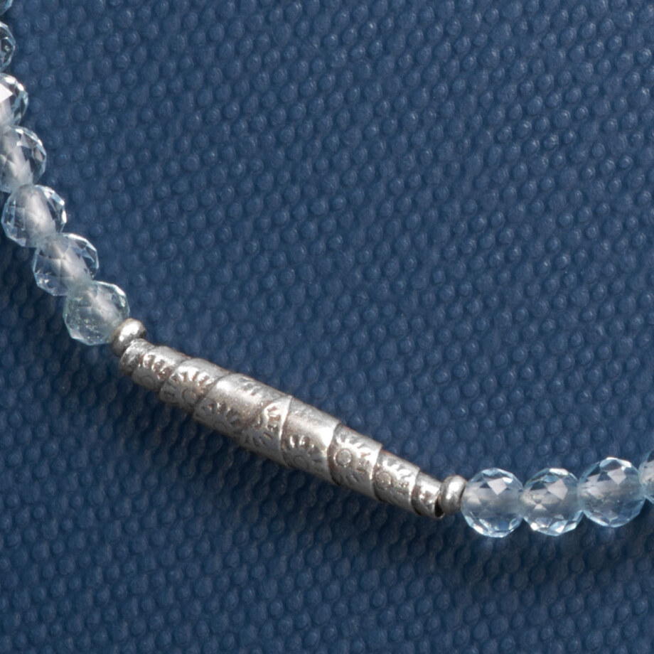 | 素材 | シルバービーズ SV950(銀純度95%)/タイ製 留め具 SV925/イタリア製 ストッパー SV940/アメリカ製 ステンレスワイヤー/日本製 ブルートパーズ/ブラジル |