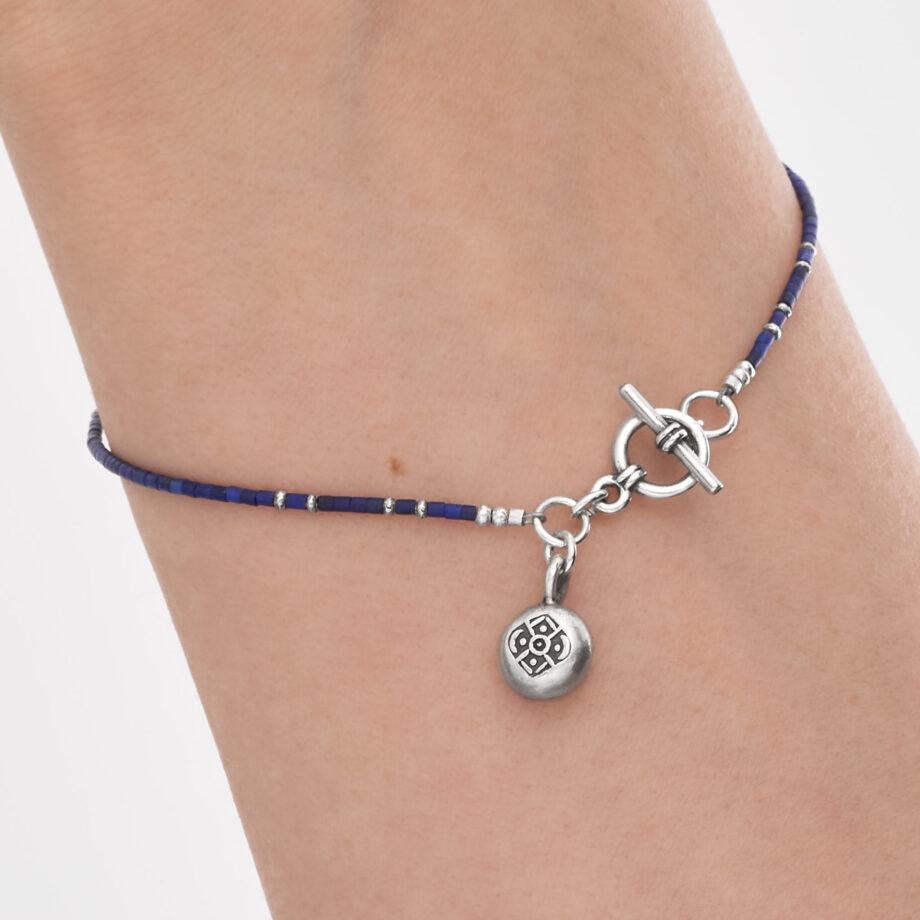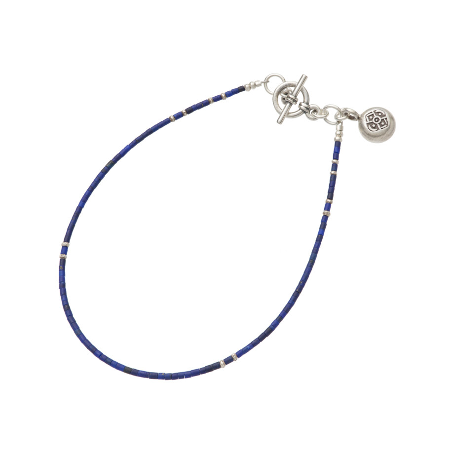 極小のラピスラズリビーズがまるで青の絹糸のように、繊細でなめらな曲線を描くブレスレットです。