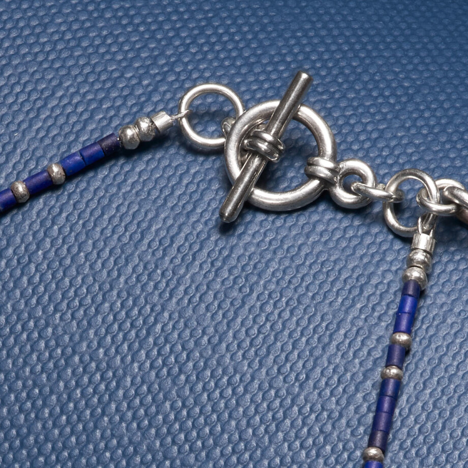 | 素材 | シルバービーズ SV950(銀純度95%)/タイ製 留め具 SV925/イスラエル製 ストッパー SV940/アメリカ製 ステンレスワイヤー/日本製 ラピスラズリ(グレードA)/アフガニスタン |