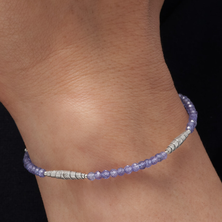 カレン族シルバー 紫陽花のような色彩 タンザナイト カッティング ビーズ ブレスレット アンクレット SV950 a06-70