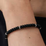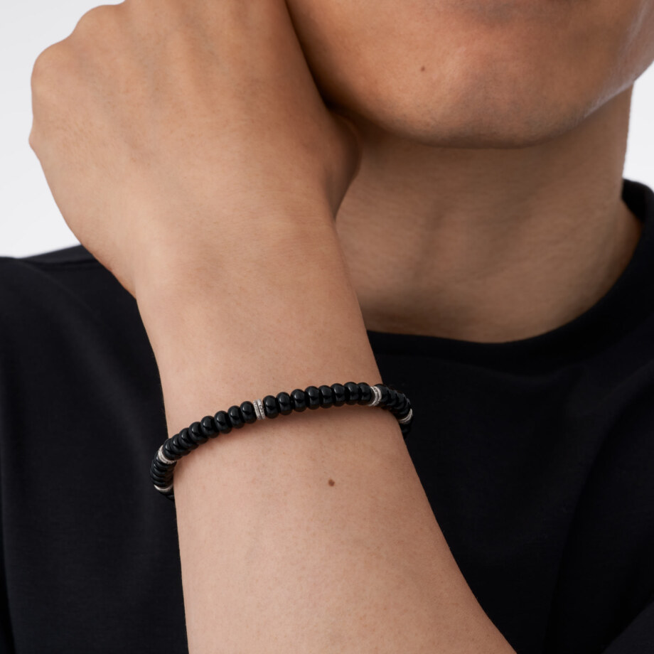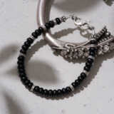 | 素材 | シルバービーズ SV950(銀純度95%)/タイ製 留め具 SV925/イタリア製 ストッパー SV940/アメリカ製 ステンレスワイヤー/日本製 ブラックオニキス/インド |