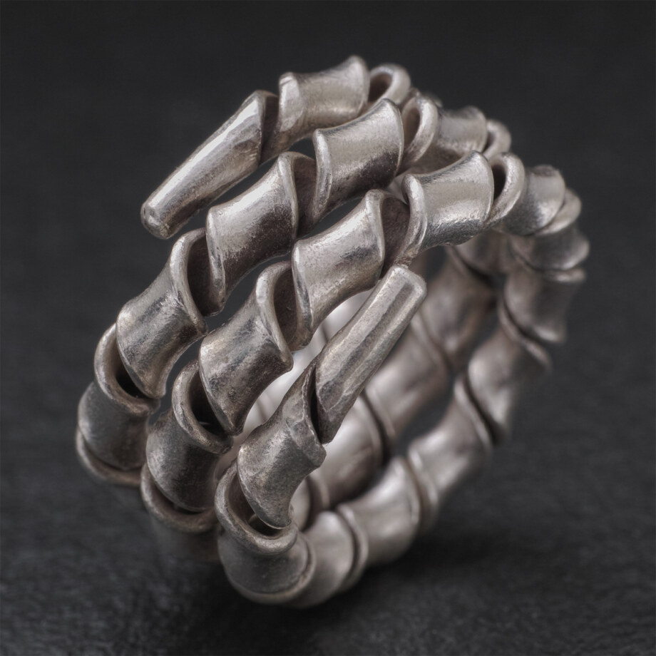 銀の板を細く螺旋状に巻き上げたカレンシルバーリングです。