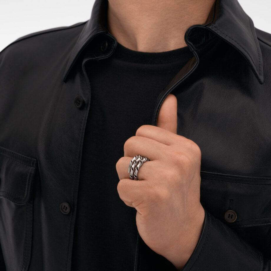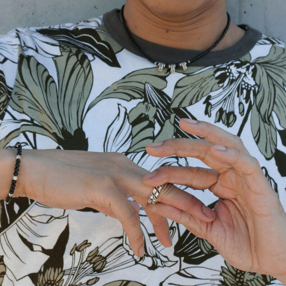 メンズ/レディース兼用。フリーサイズ。純度の高い銀を使用しているので柔らかく、サイズを自由に変えられるのが特長です。