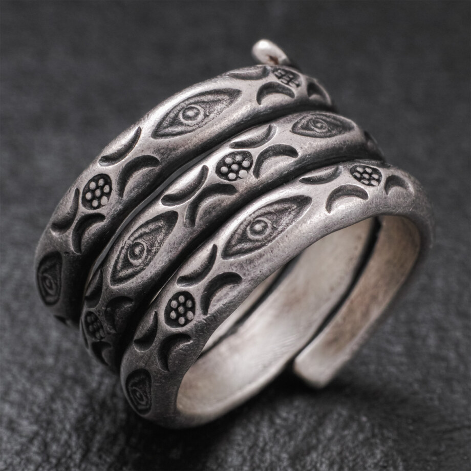 カレン族シルバー リング 15号~29号 フリーサイズ 指輪 幅広 極太 眼文様 護身符 お守り 魔除け SV950 a07-23