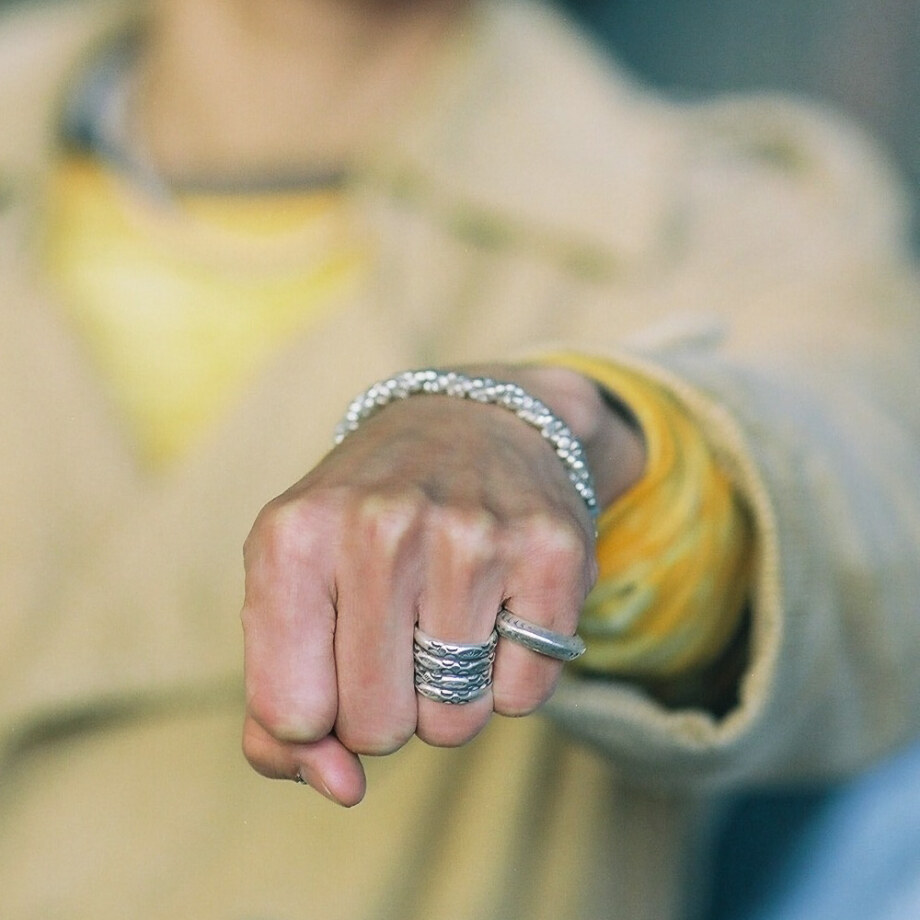 メンズ/レディース兼用。フリーサイズ。純度の高い銀を使用しているので柔らかく、サイズを自由に変えられるのが特長です。