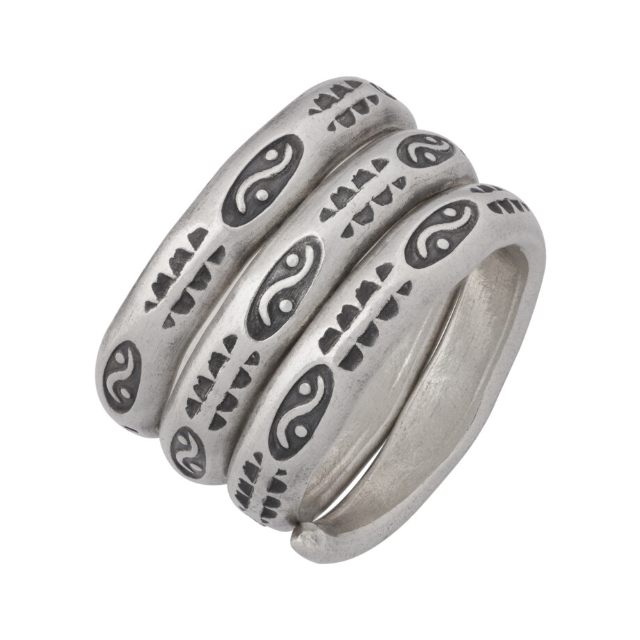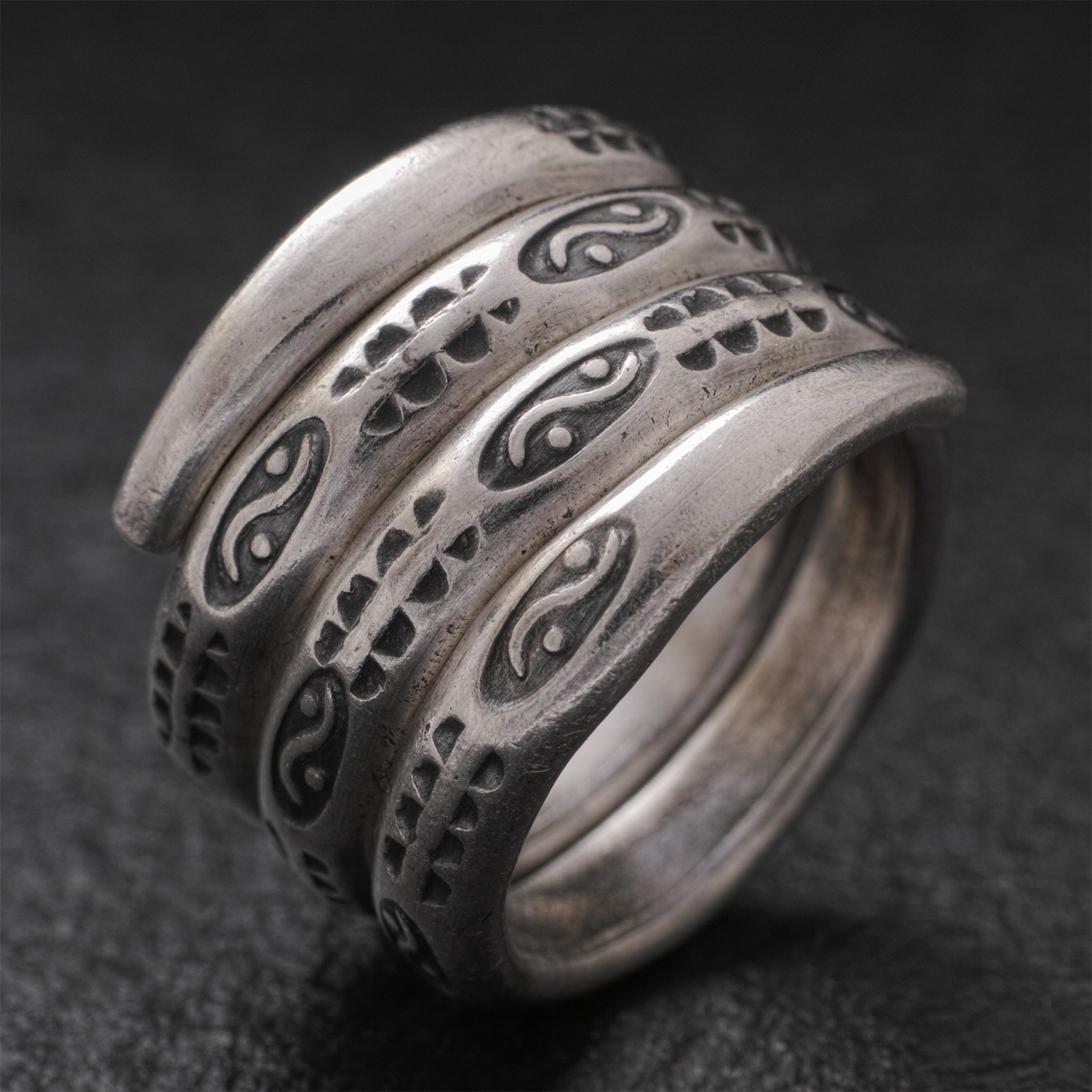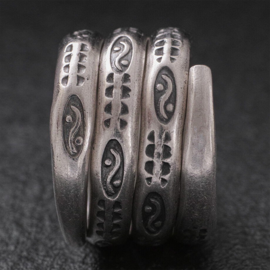 カレン族シルバー リング 11号~29号 フリーサイズ 指輪 幅広 極太 陰陽/芋虫文様 SV950 a07-31