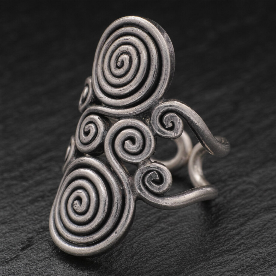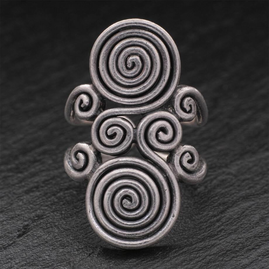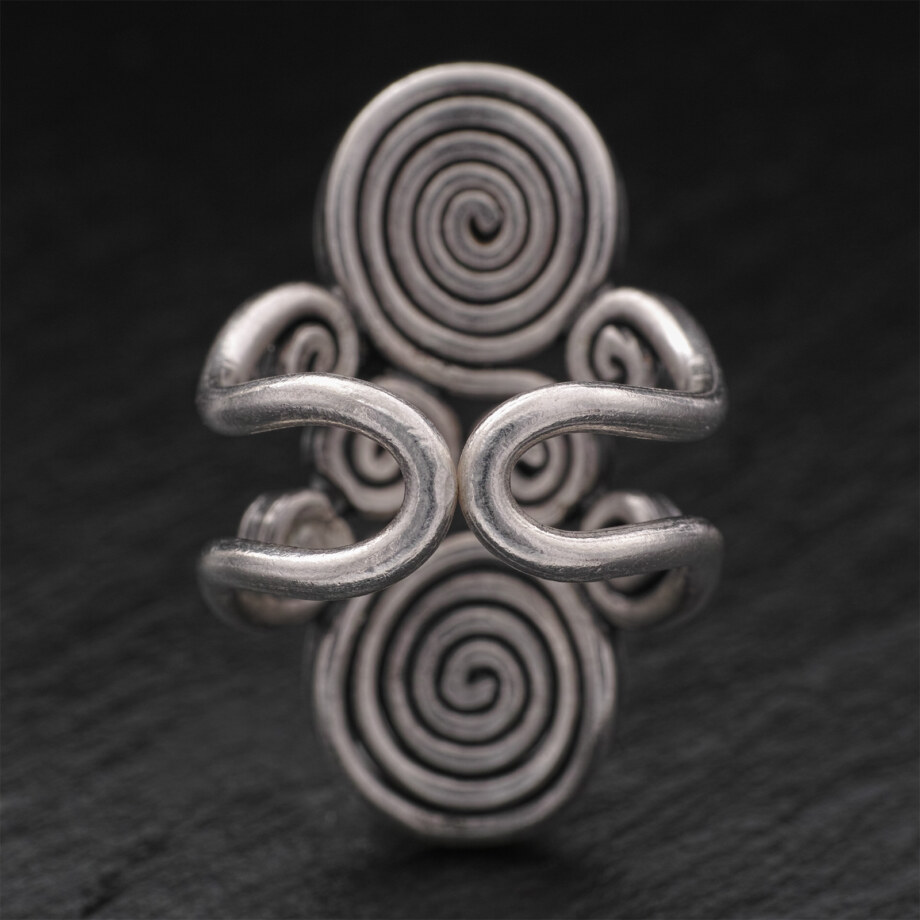 銀の棒を渦状に巻いた独特なフォルムのカレンシルバーリングです。