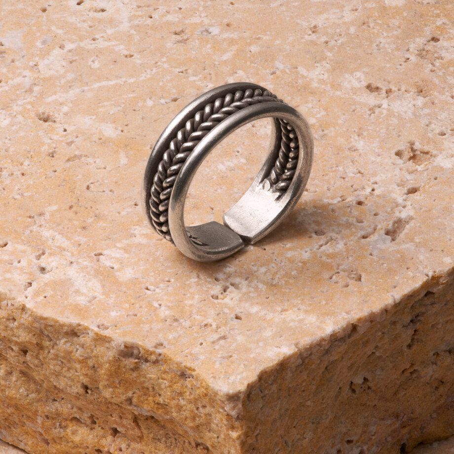 麦の穂のような模様が中央に連なるカレンシルバーリングです。