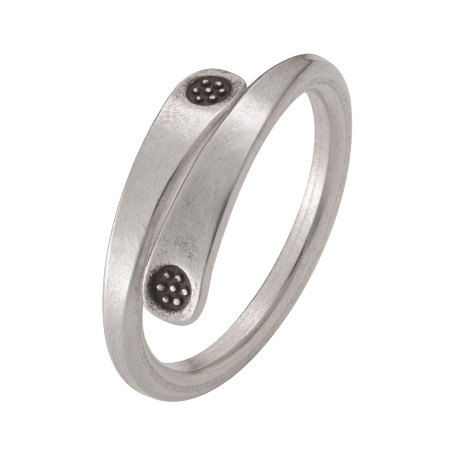 平らにならした両端に七曜文の刻印を打ち込んだ細身のカレンシルバーリングです。