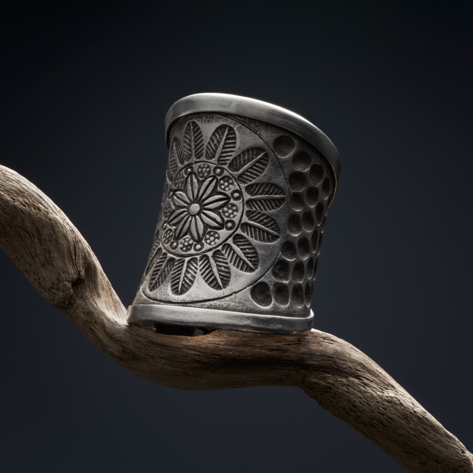 最長幅31.5mmで極太、放射状に広がる曼荼羅のような模様が目を引くカレンシルバーリングです。