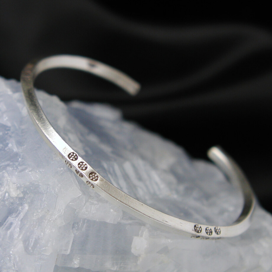 マットな質感が特徴で、刻印の一つ一つが異なる表情を持ち、素朴なぬくもりが心に響きます。