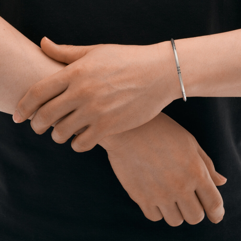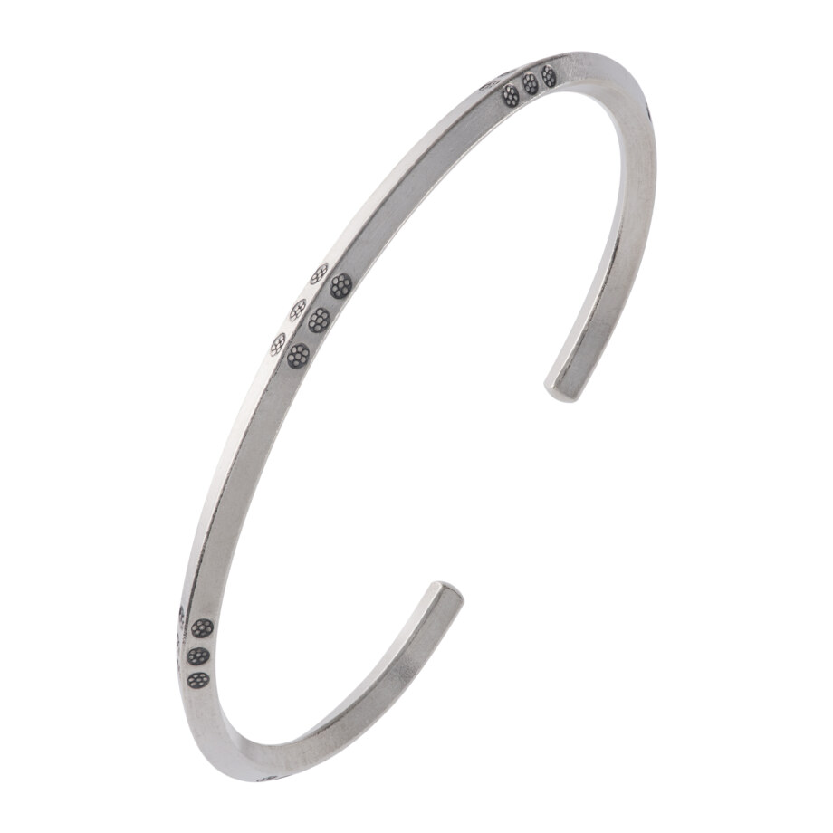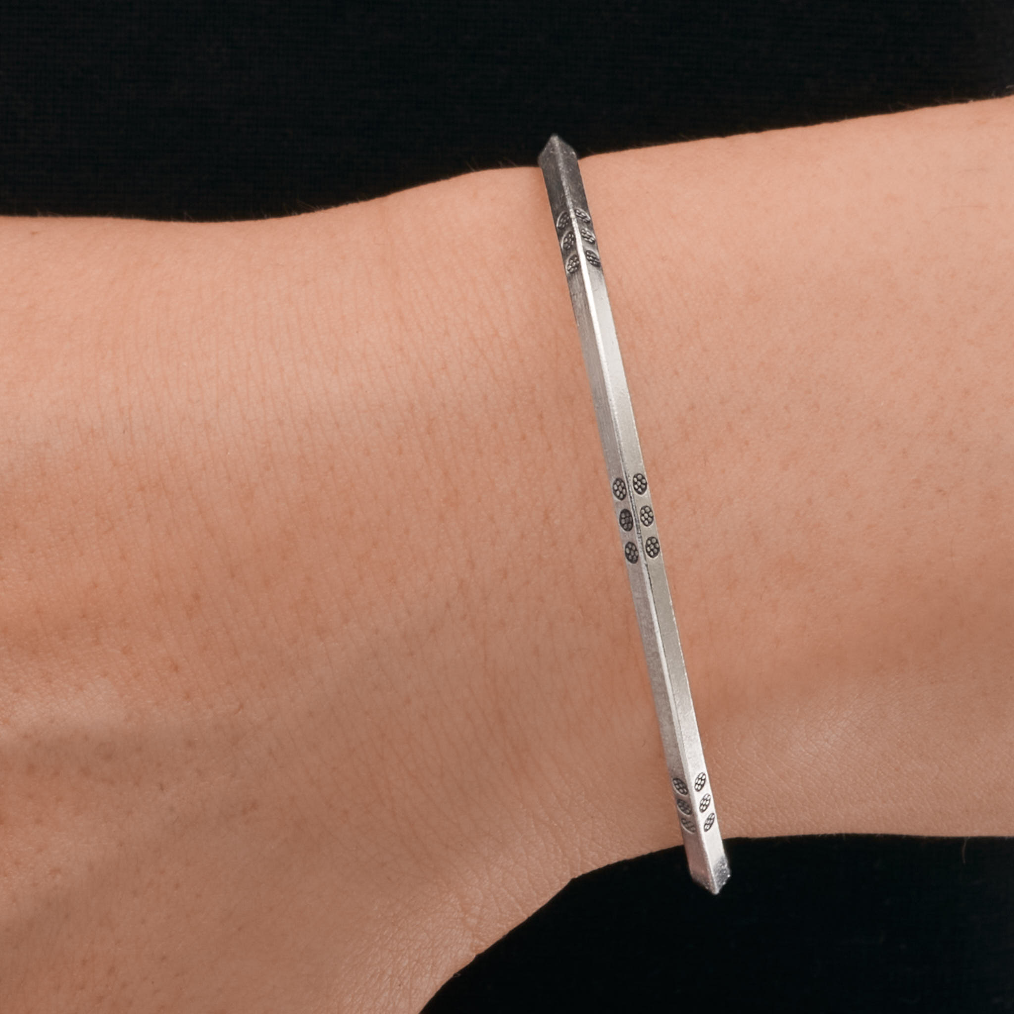 菱形フォルムのエッジがシャープなラインを描く細身のカレンシルバーバングルです。