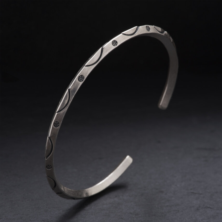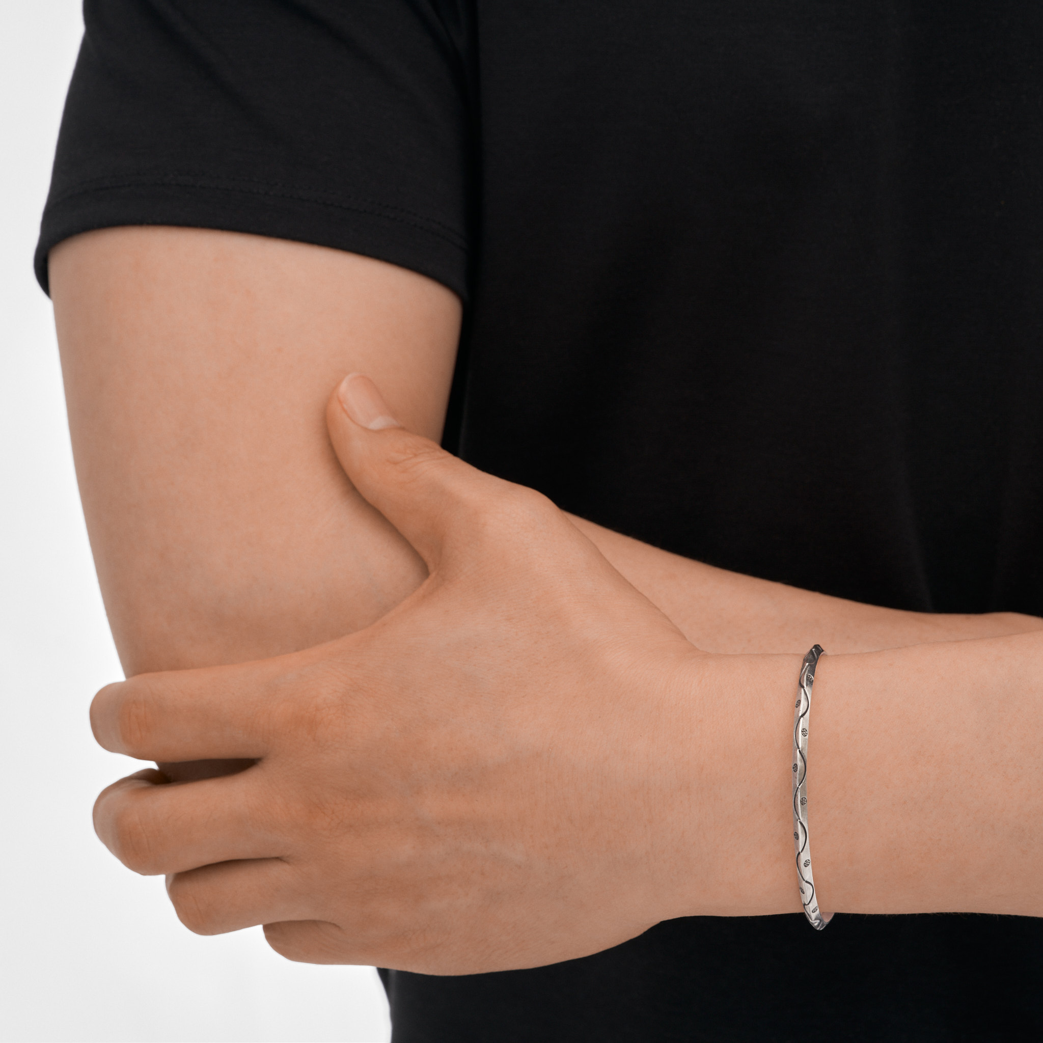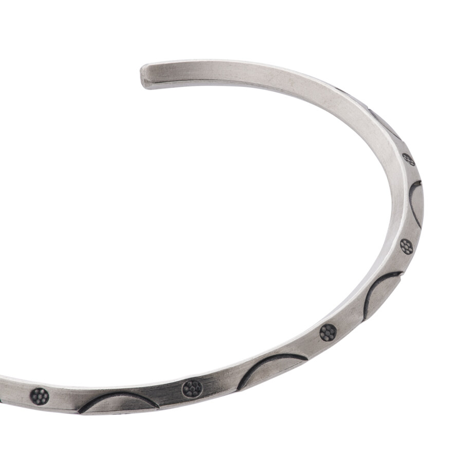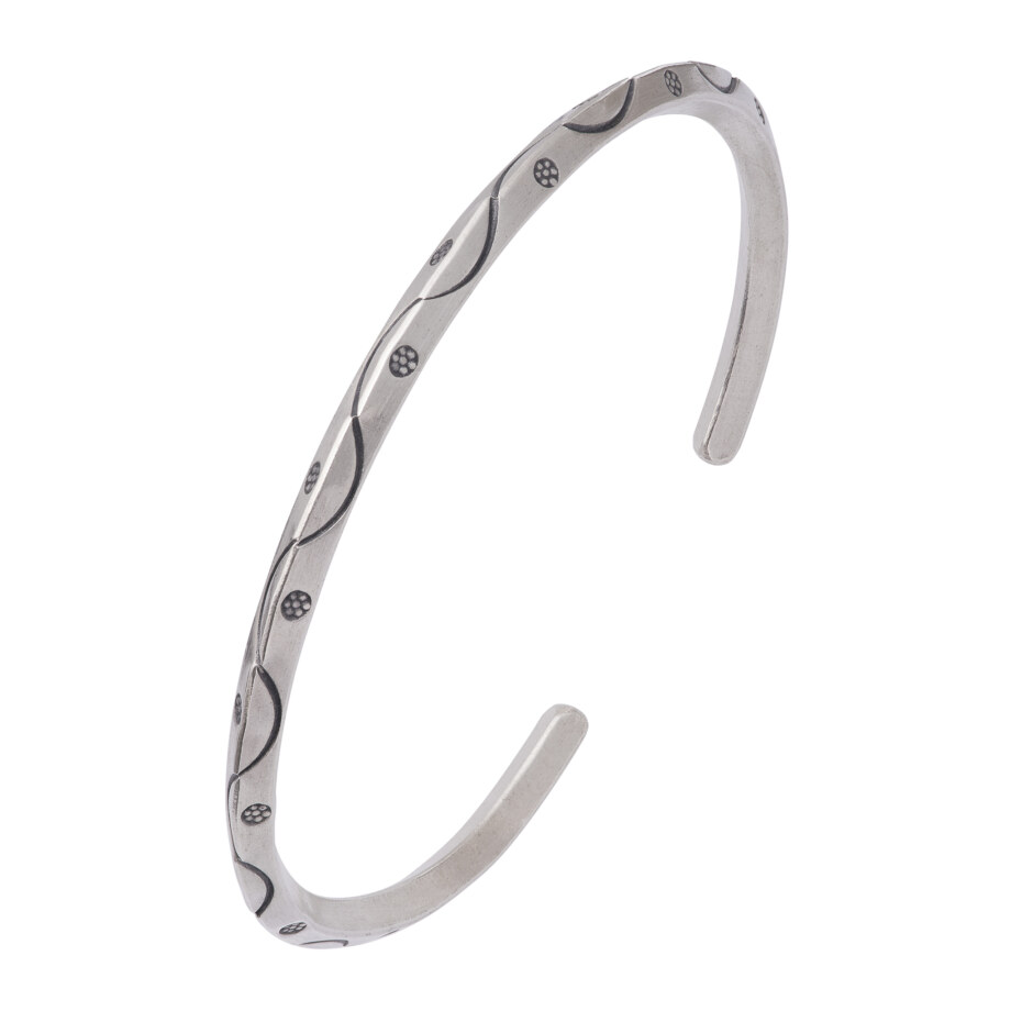 菱形フォルムのエッジがシャープなラインを描く細身のカレンシルバーバングルです。