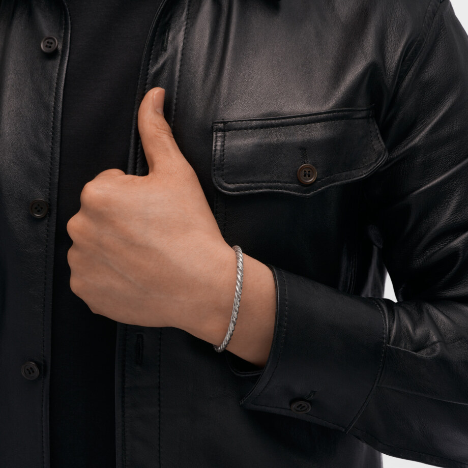 ねじることで柔軟さと強靭さを増し、手首にしなやかにしっくりと馴染みます。
