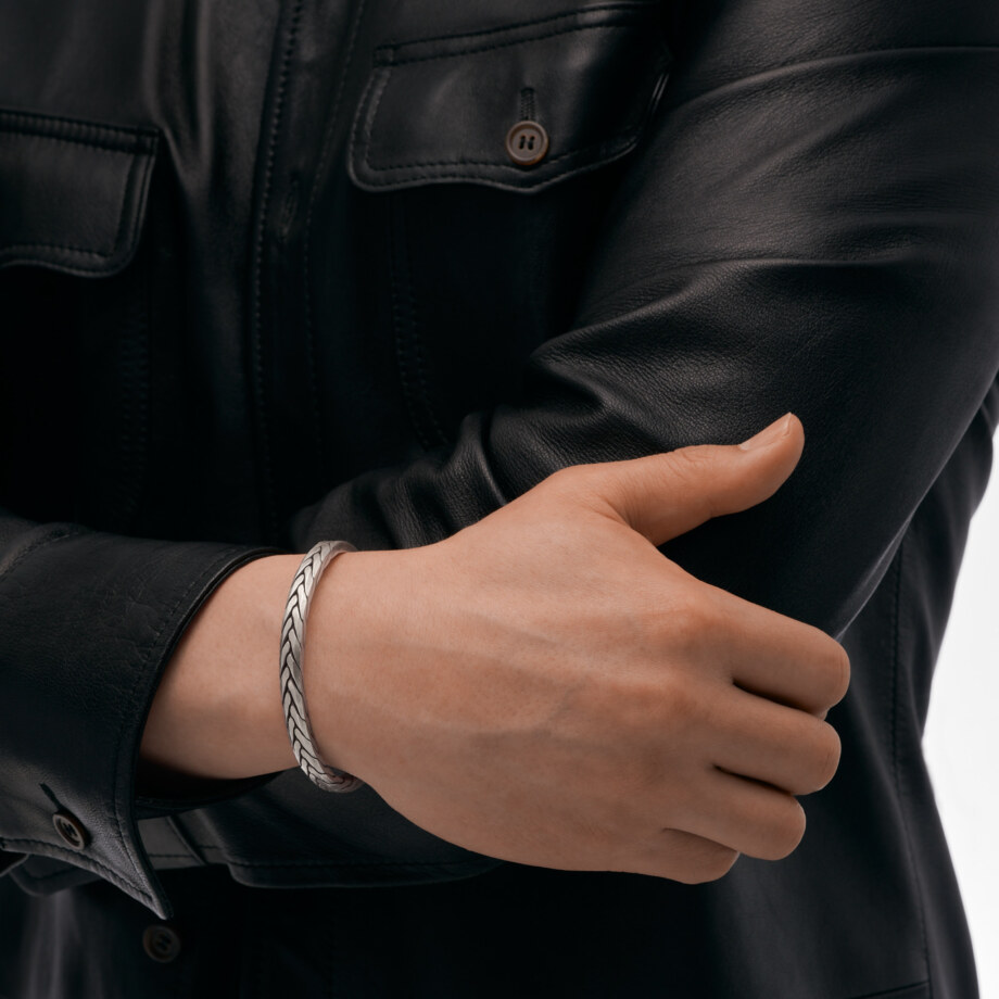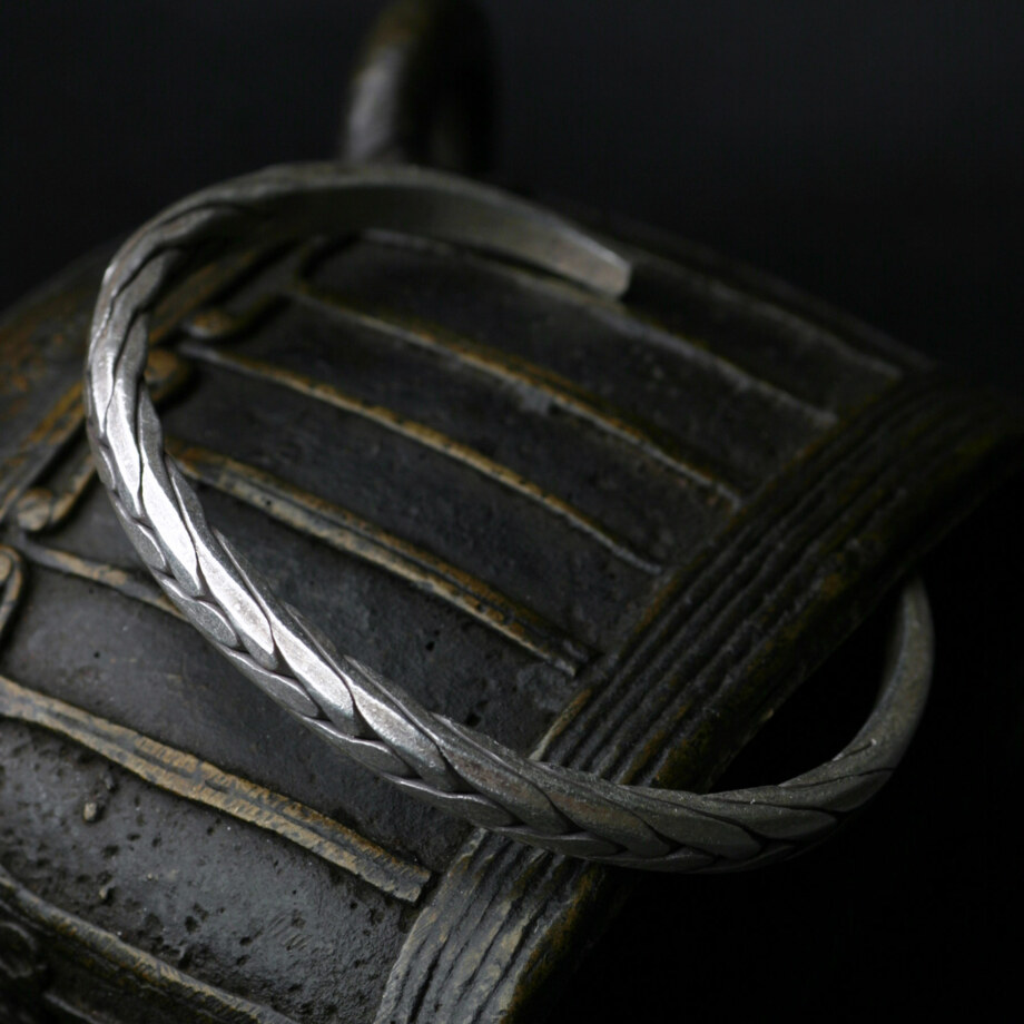 銀の編み目が美しい甲丸のカレンシルバーバングルです。